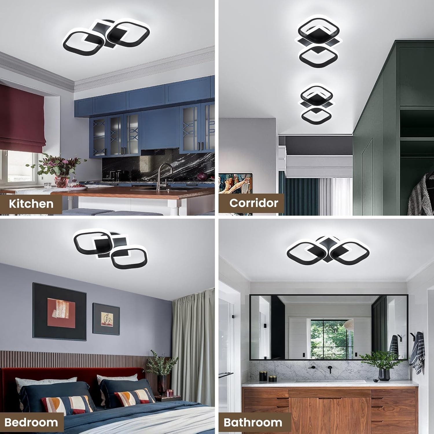EIDISUNY 69W LED Dimmable Ceiling Light Modern 4-Square Remote Control Black