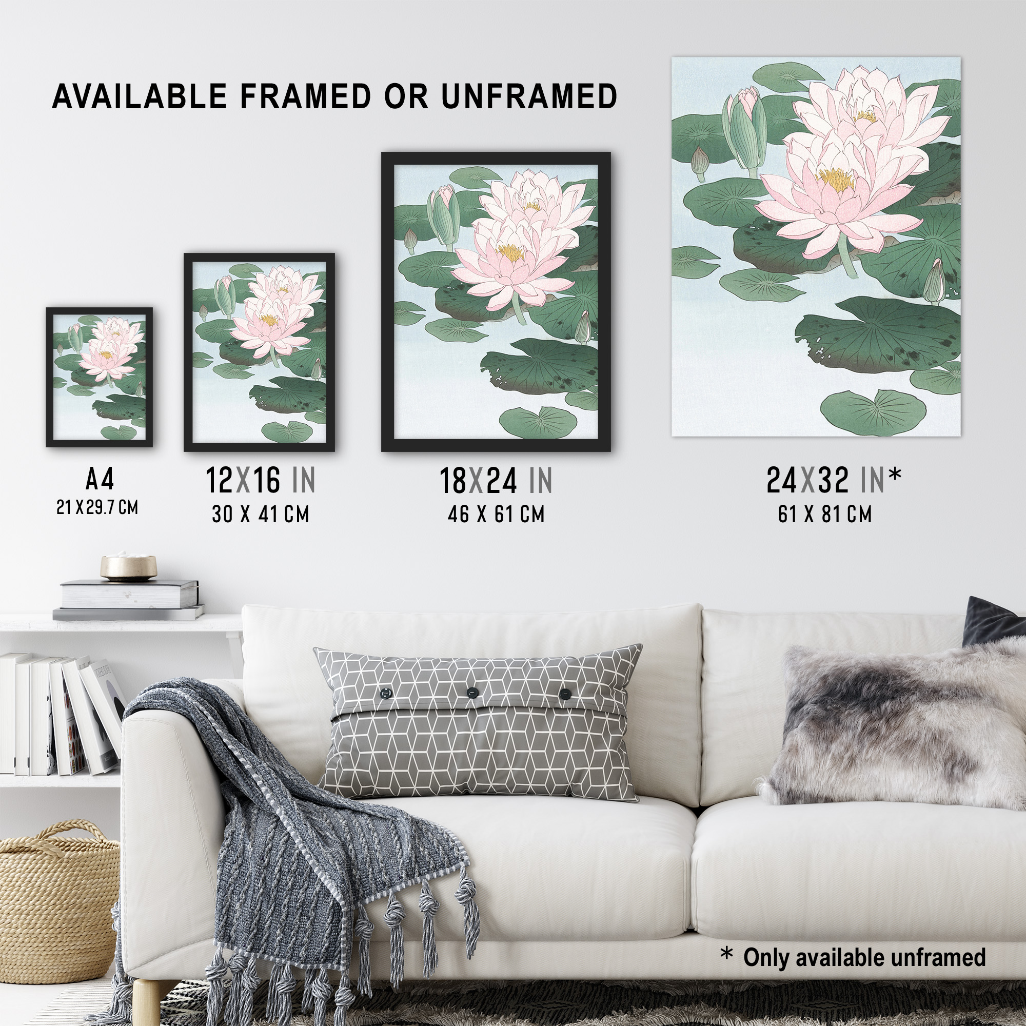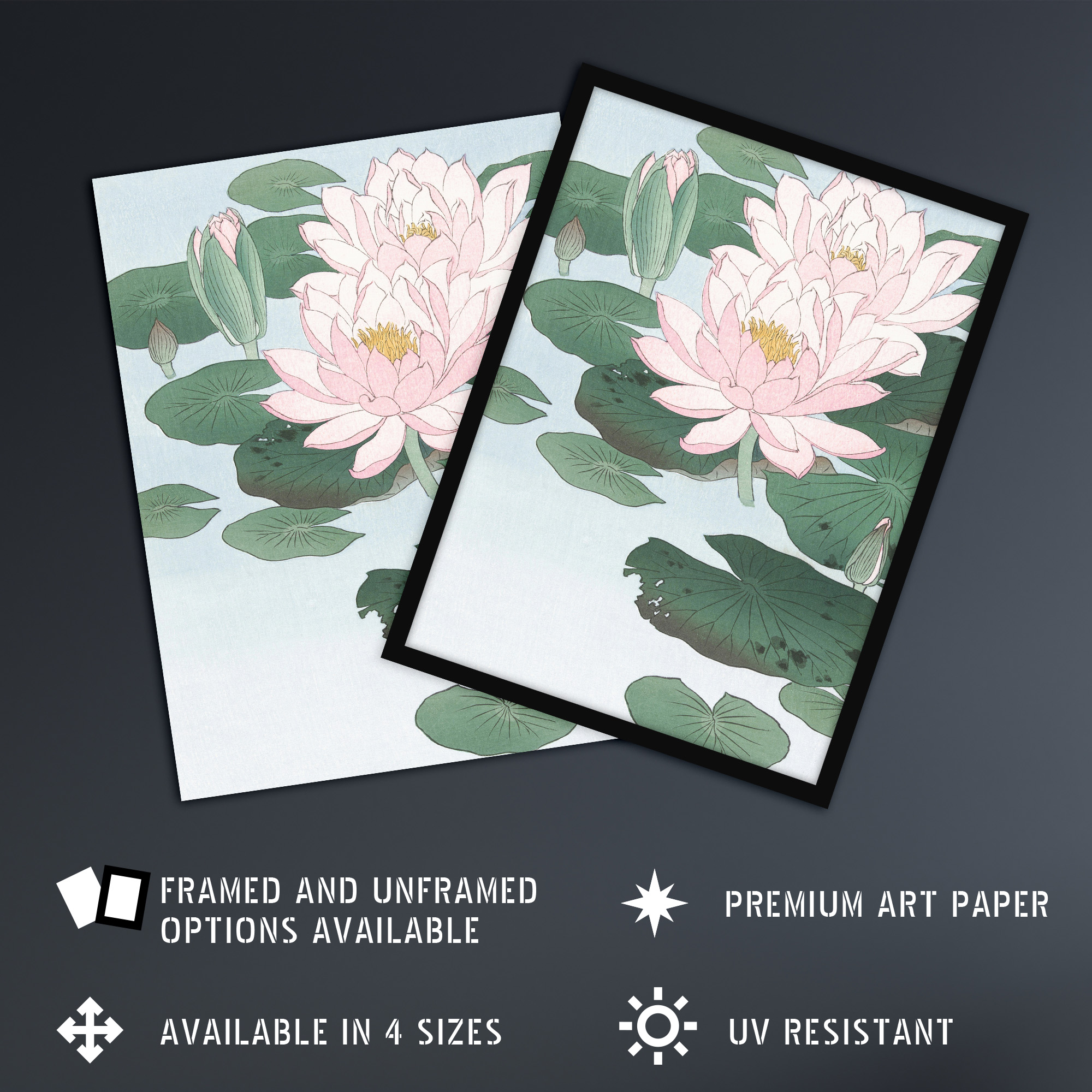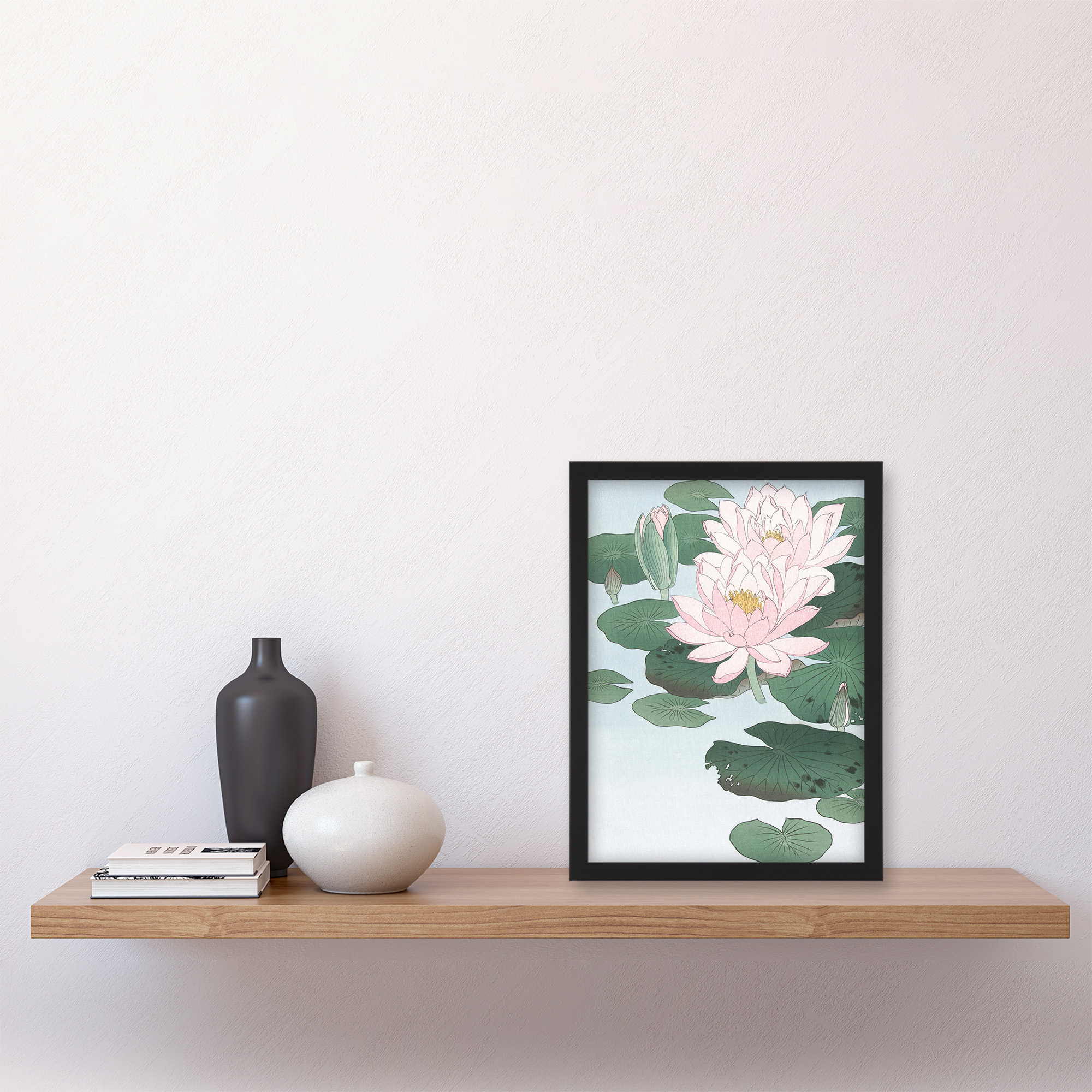 Artery8 Water Lily Pads Pink Flower Bloom Japanese Framed Wall Art Print Koson Size: A4 Pink A4