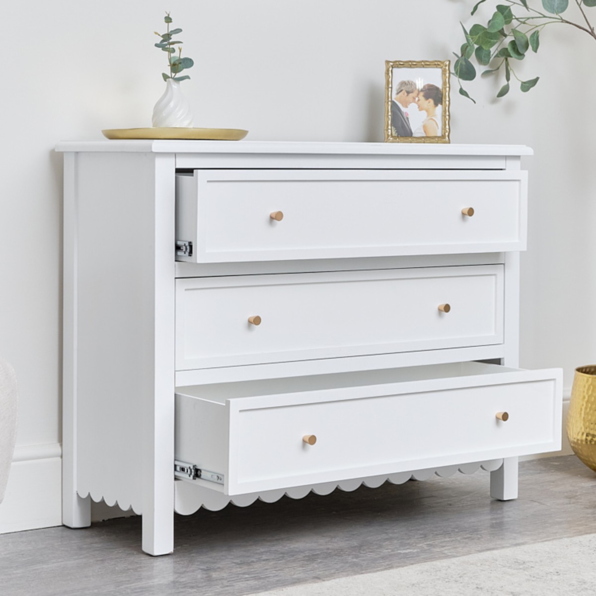 Large Scalloped 3 Drawer Chest of Drawers white storage bedroom furniture