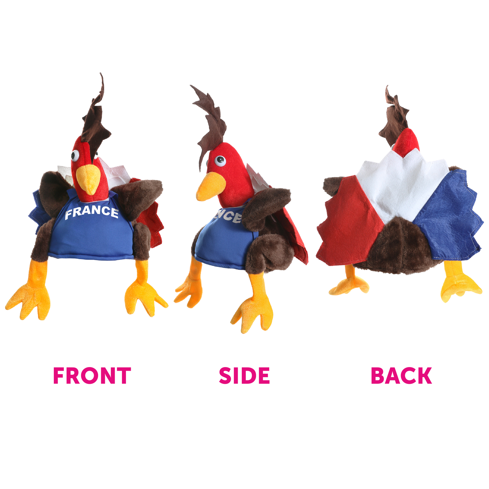 FRENCH COCKEREL HAT FRENCH COCKEREL HAT: Rise and shine bright and early for the next Sporting Event and show some support for France, with our novelty plush French Cockerel Supporters Hat! COCKEREL HAT DETAILS: This French Cockerel Hat is a comfortable plush Hat in the shape of a Cockerel, it wears a Blue Top with 'FRANCE' printed across the front, with French Flag colours on the Tail and long legs dangling down either side, the perfect finishing touch to your supporters outfit! ONE SIZE FITS MOST: Being a very comfortable size, this French Cockerel Hat is wearable for most if not all adults, this is perfect for all French Sporting Events and more! PERFECT FOR SPORTING EVENTS: If you are supporting France in the next big sporting event, then look no further, you can't go wrong with.