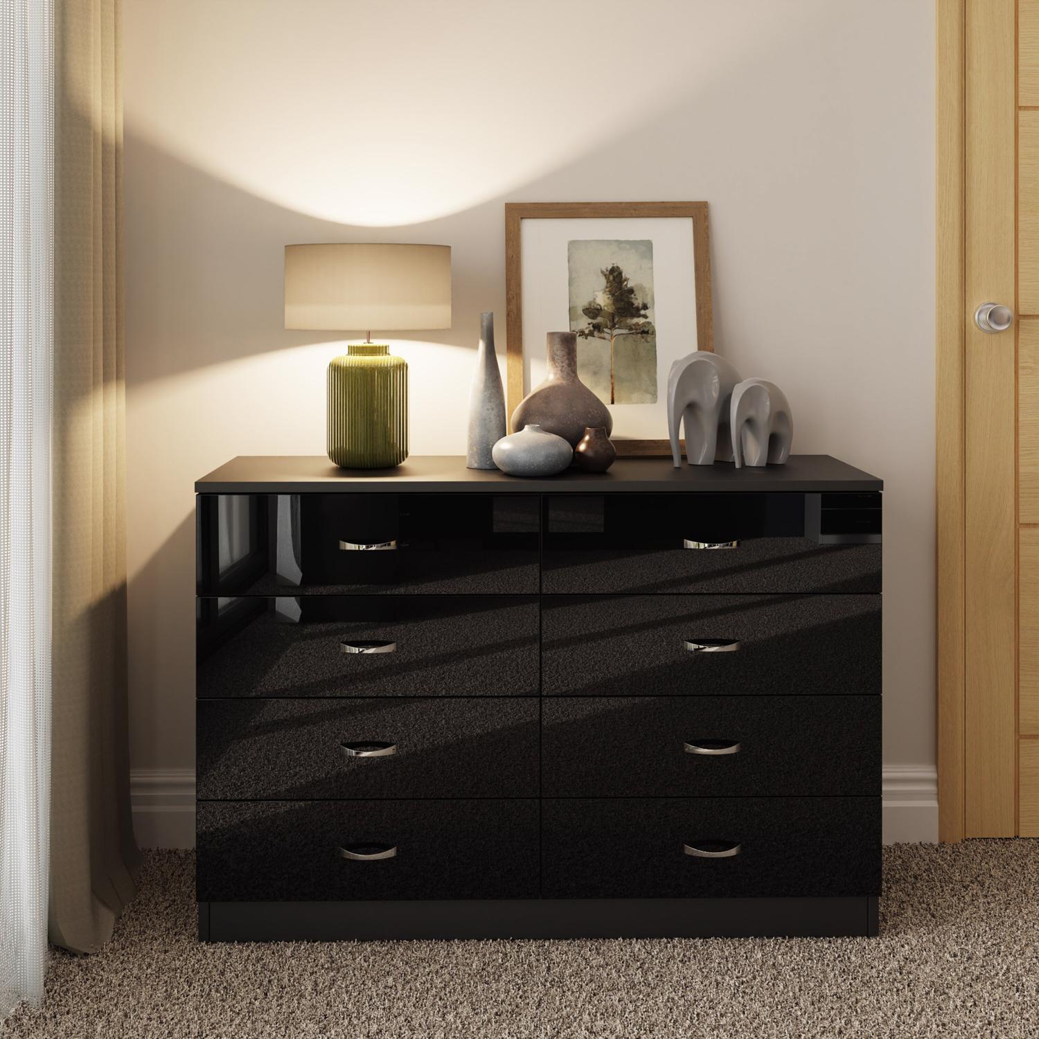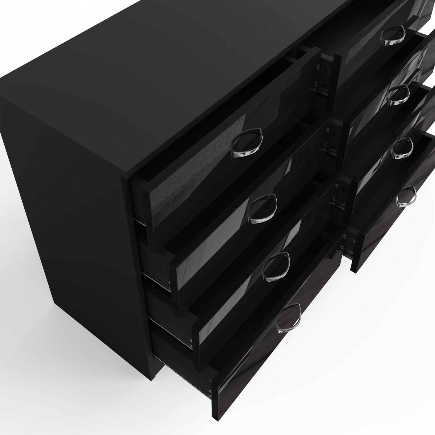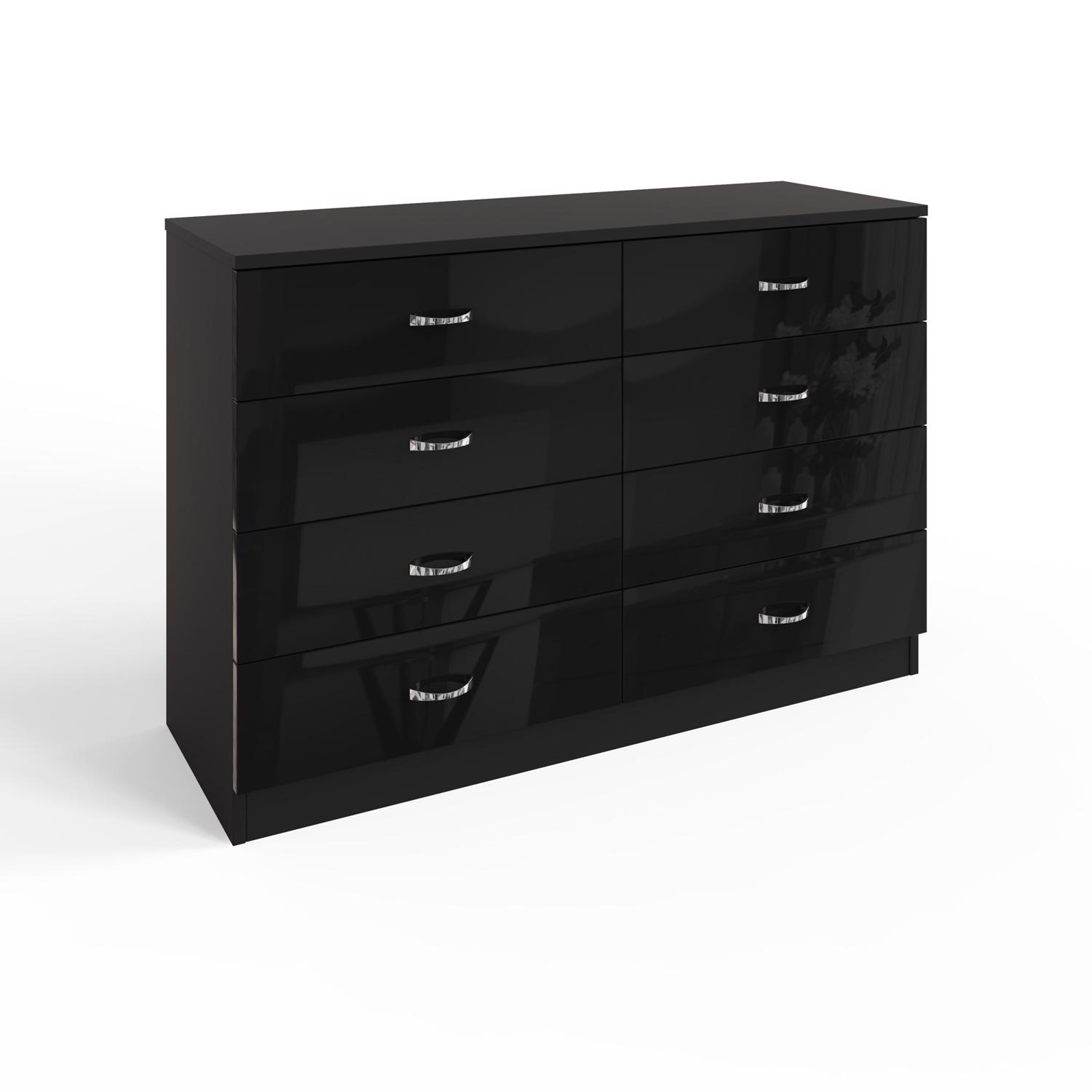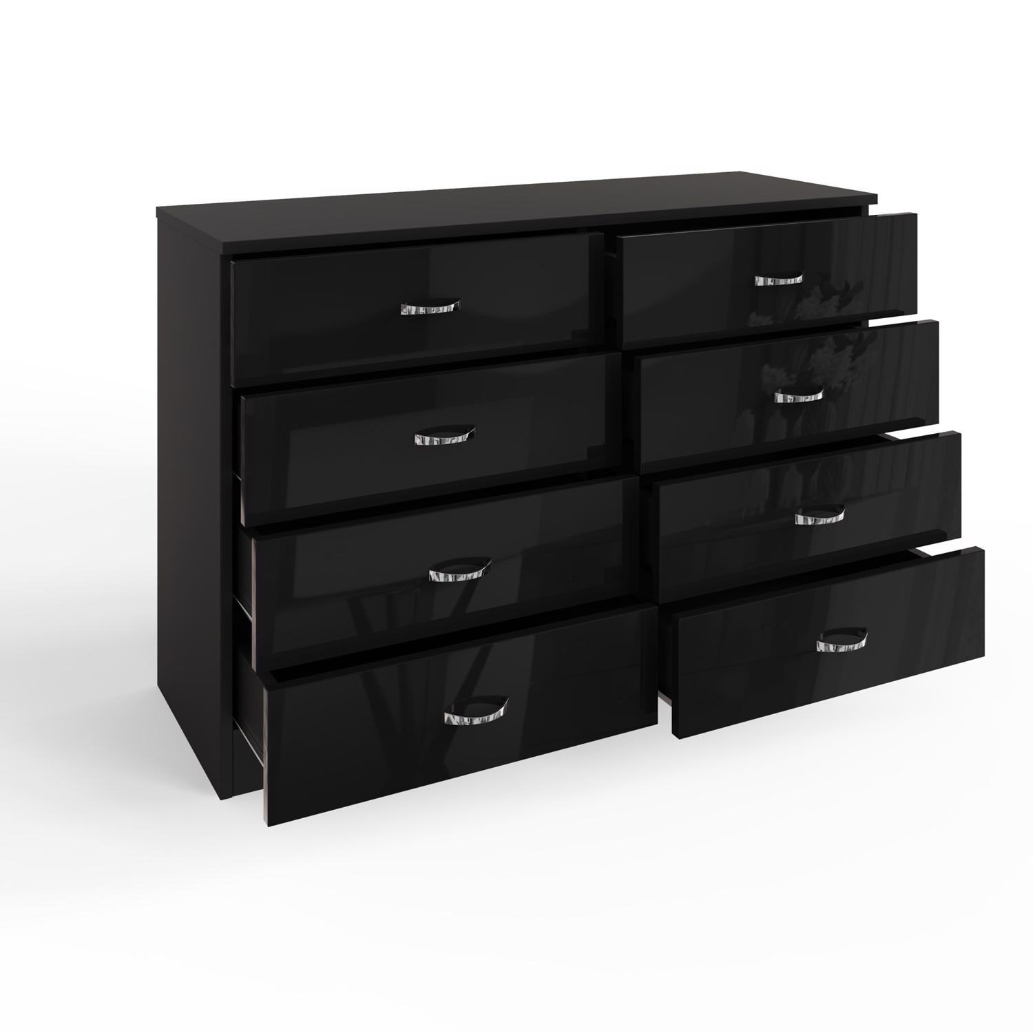 Bedside Cabinet 2-8 Drawer Chest of Drawers Black High Gloss Matt Frame