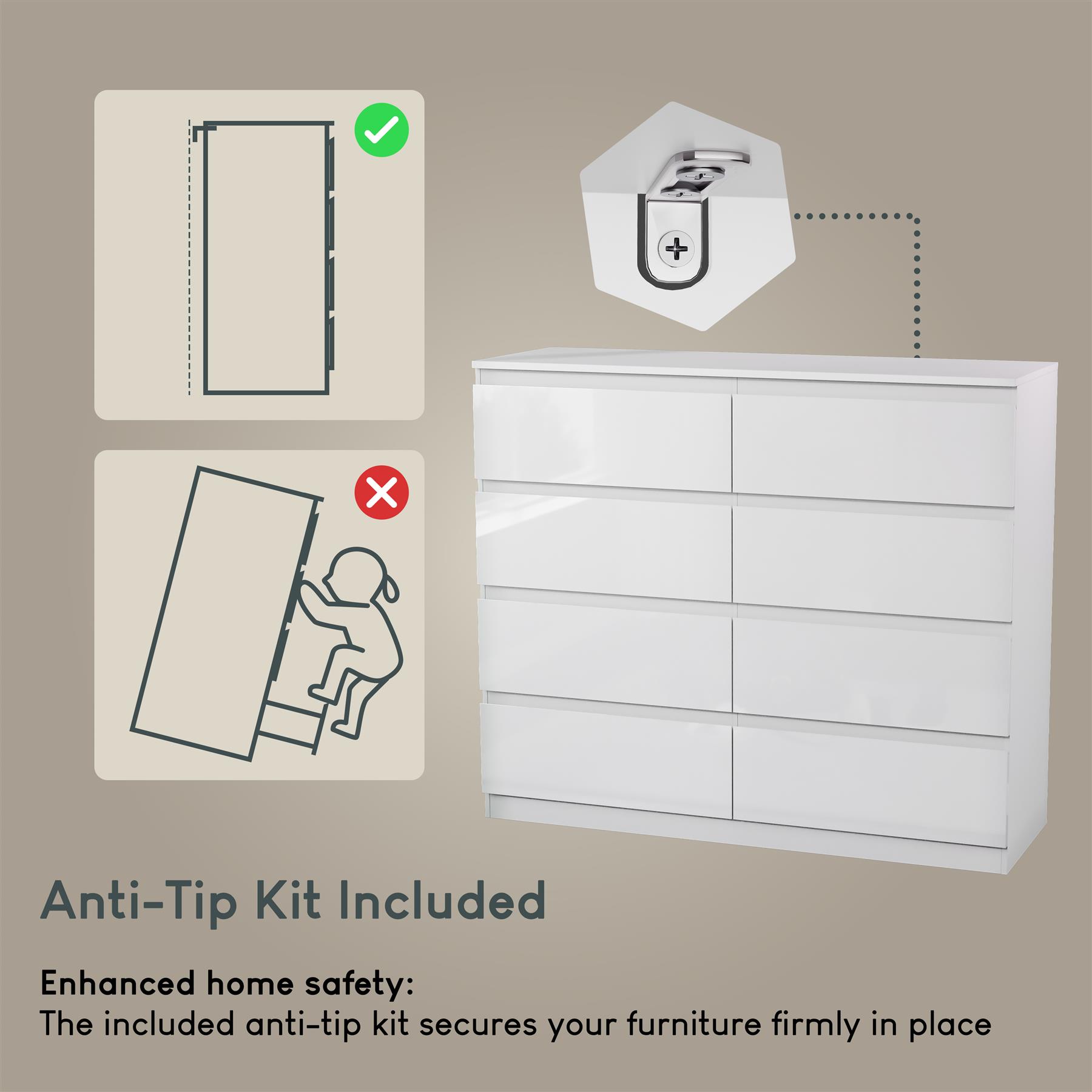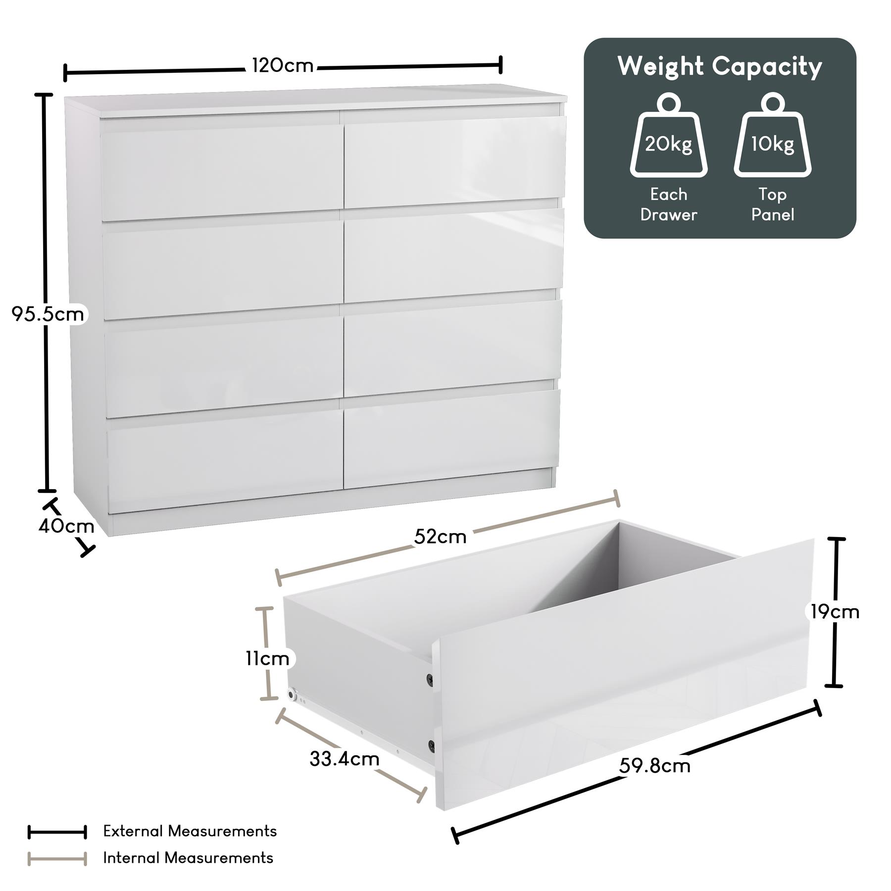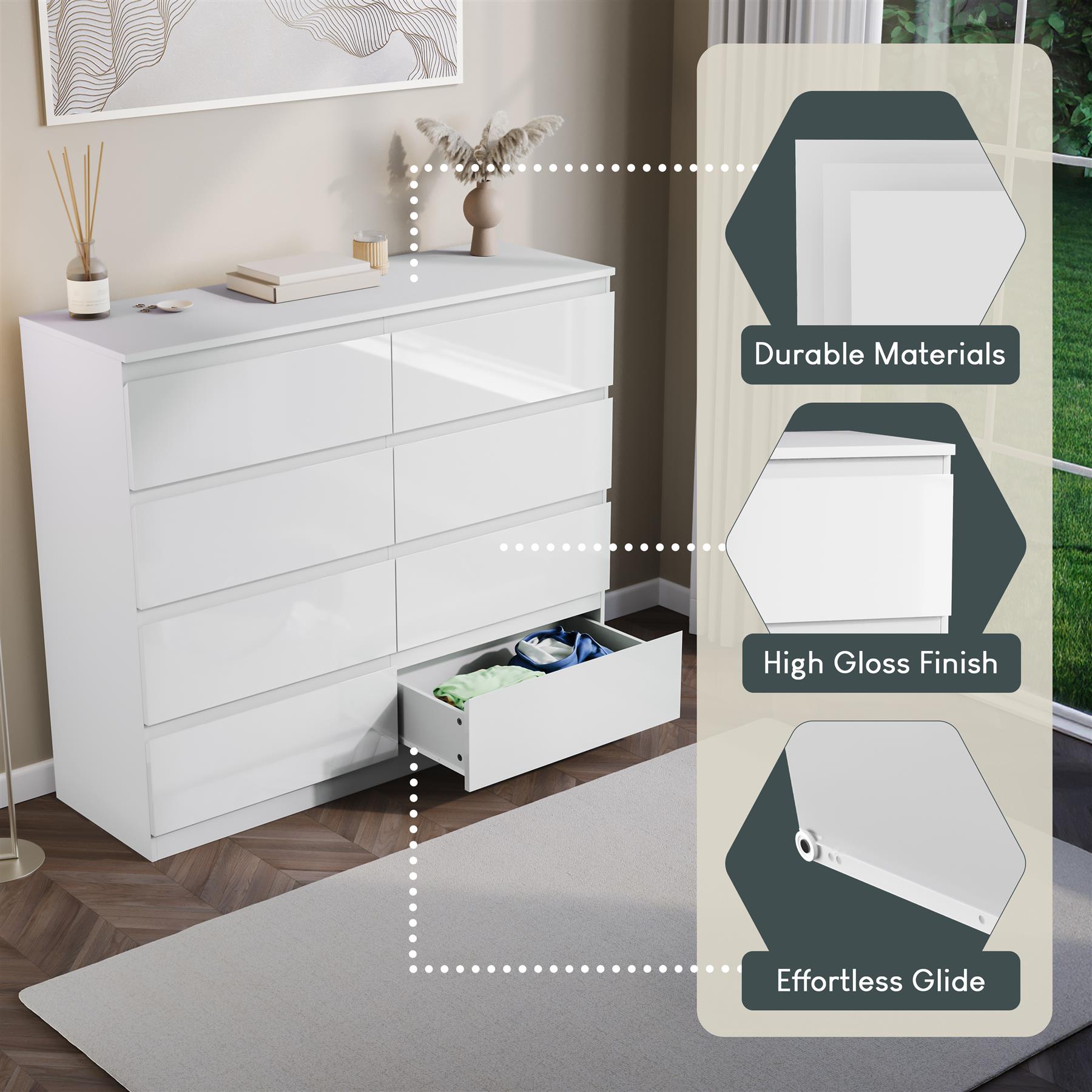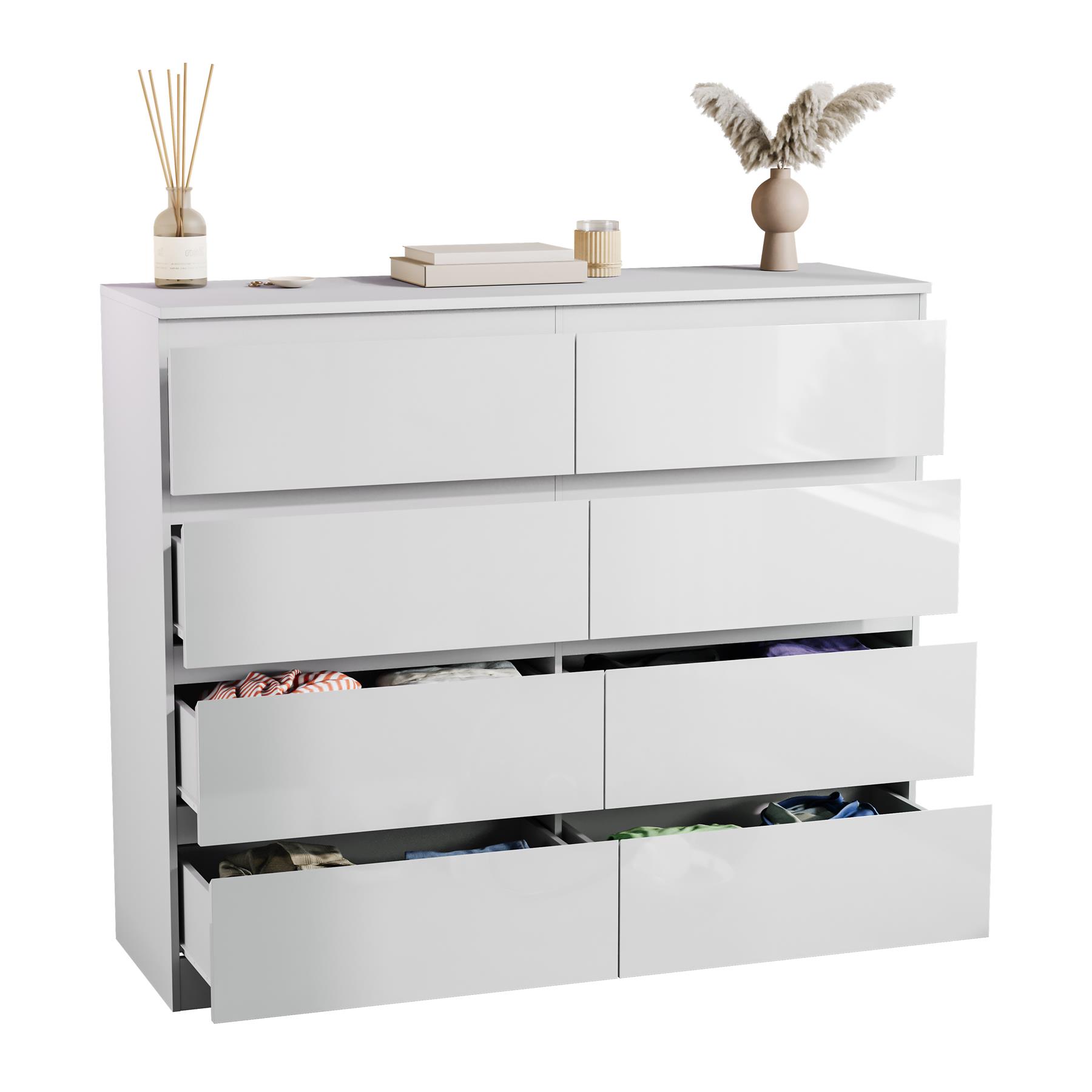 Modern 8 Drawer Chest of Drawers Gloss Storage Cabinet Bedroom Furniture