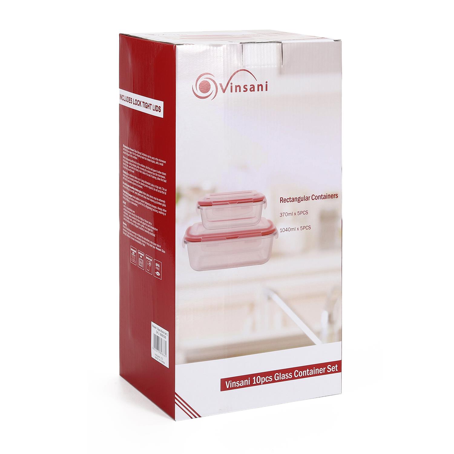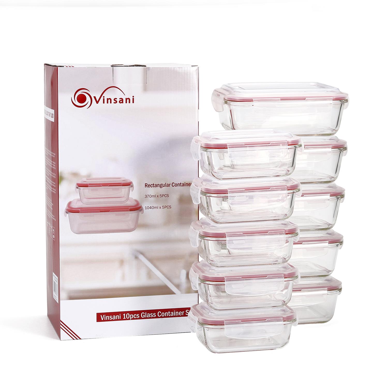 Vinsani 10-Pack Glass Food Storage Containers - Airtight, Leakproof, BPA-Free