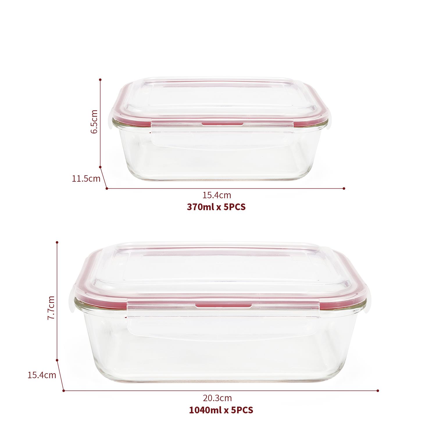 10-Pack Vinsani Glass Food Storage Containers Clear Meal Prep Airtight Lid Bar
