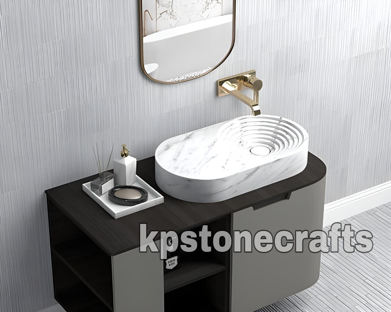 Marble Sink | Handmade Round Basin | Countertop Marble Sink | White Stone Sink