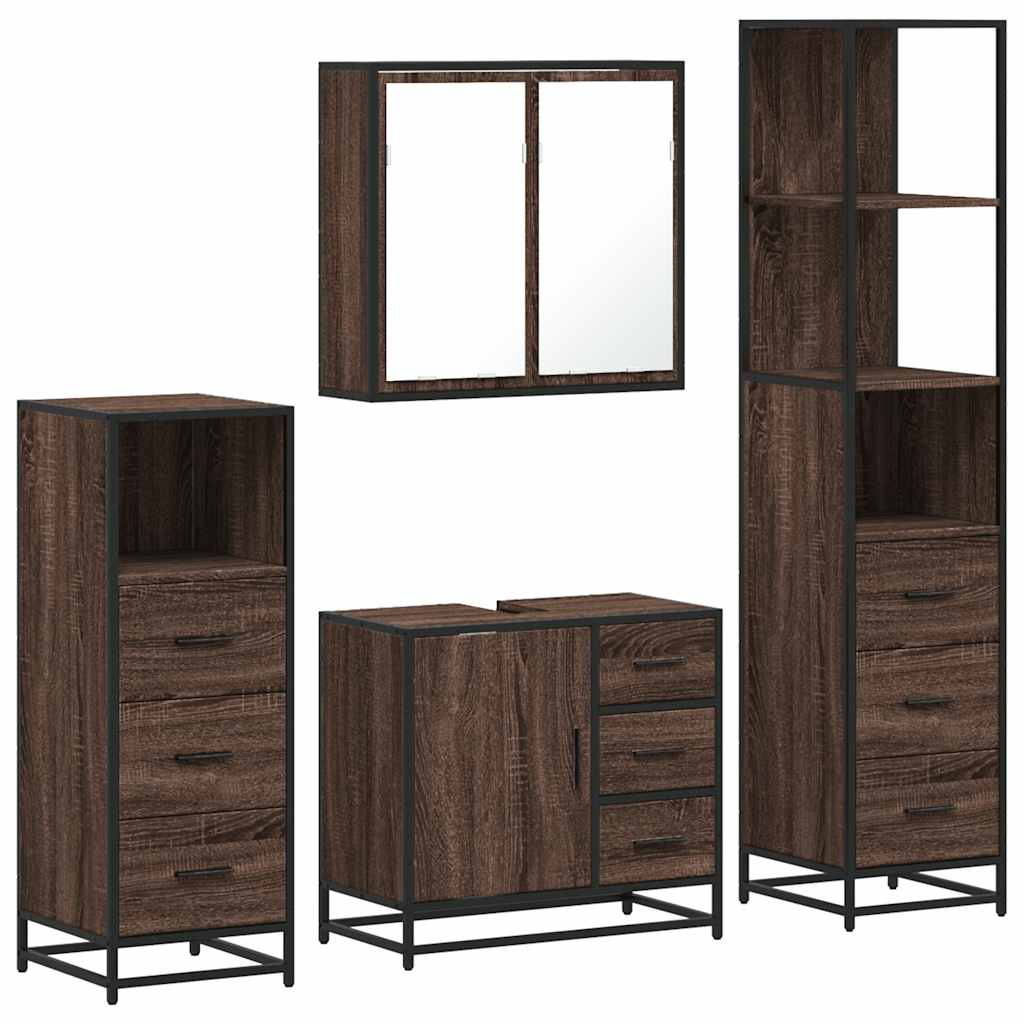 VidaXL 4 Piece Bathroom Furniture Set in Brown Oak - Stylish, Durable Engineered Wood with Ample Storage. Transform your bathroom into a modern and organized space with thevidaXL 4 Piece Bathroom Furniture Set in Brown Oak.