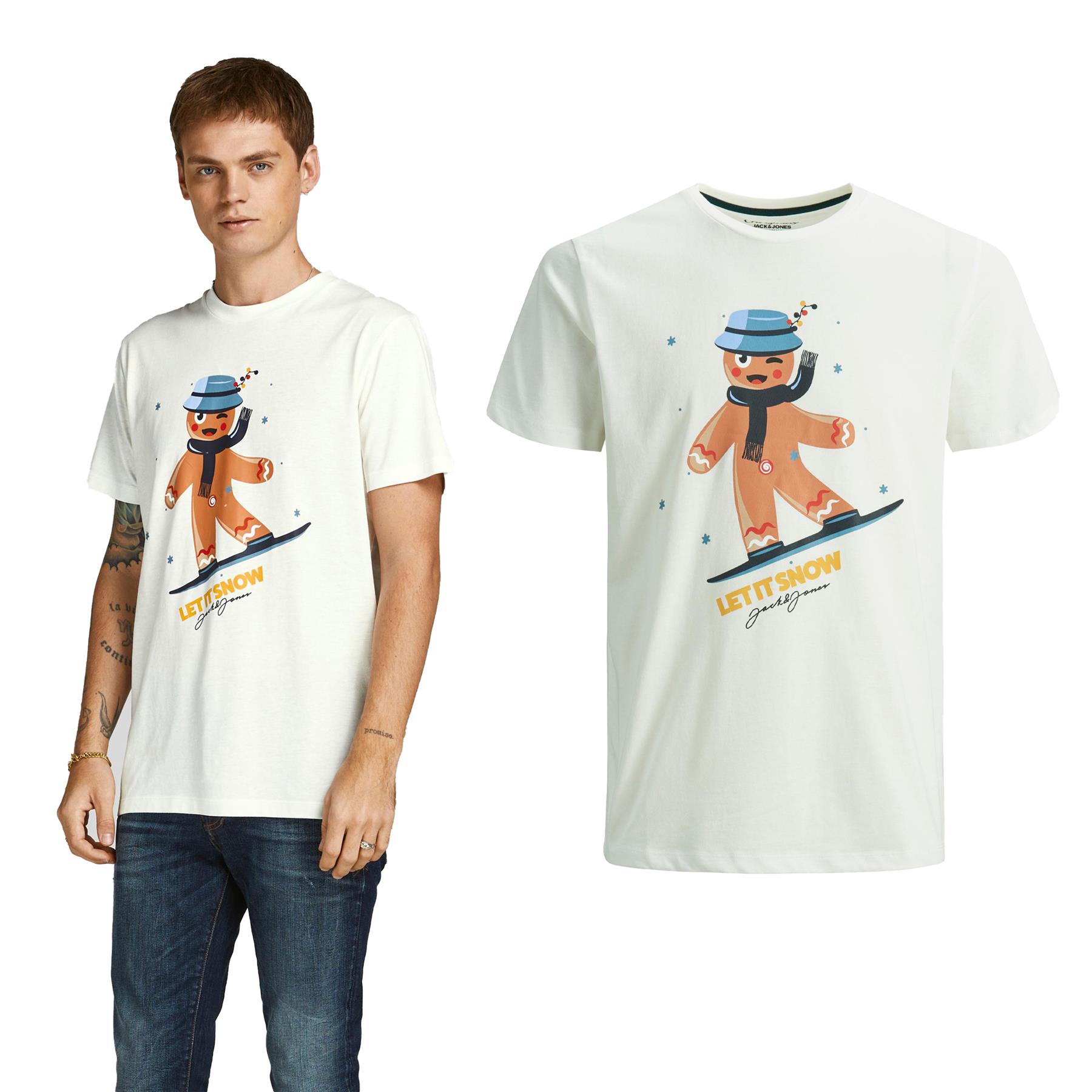 Jack & Jones Mens Printed T-shirt Crew neck Tee Top Long Sleeve T-shirts for Men
