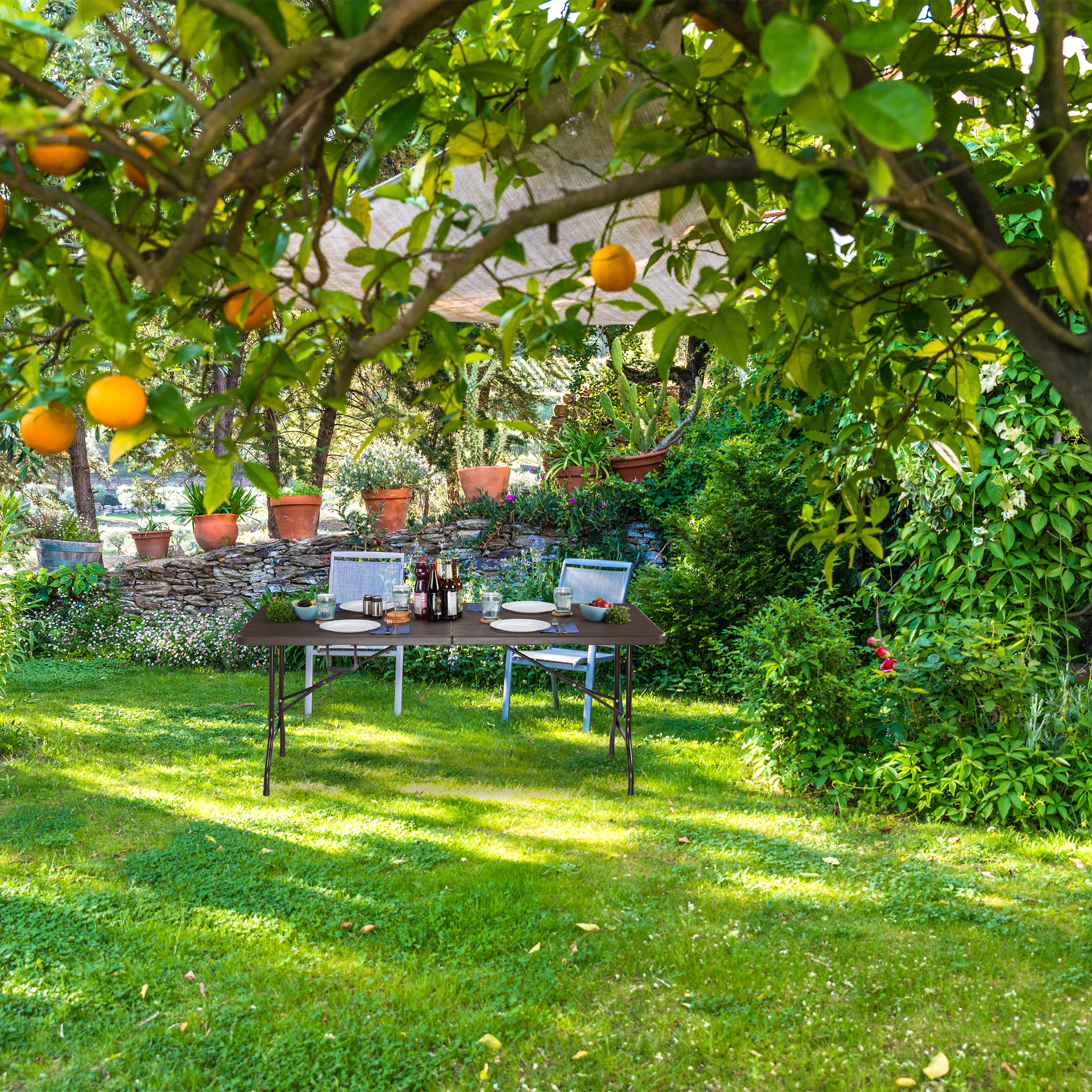 Outsunny Garden Table for 6 Person with Slat Top, Steel Frame, Black