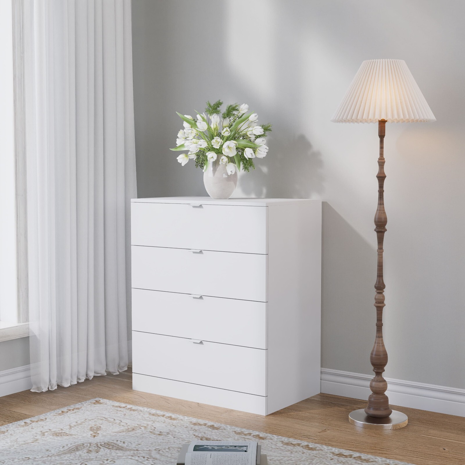Modern White Chest of Drawers Tall Wide 4 Drawer Bedroom Furniture Cabinet