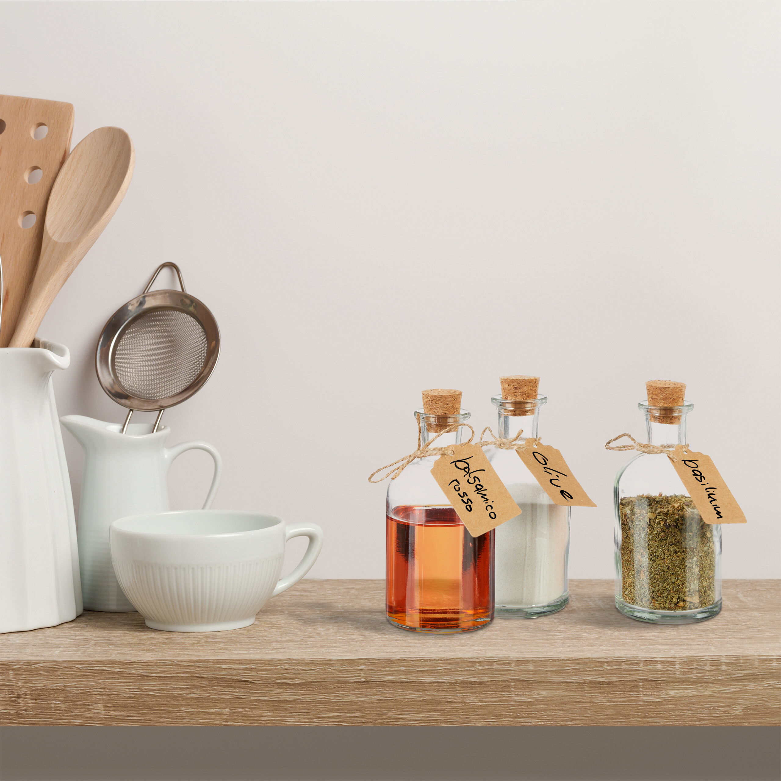 Spice jars Set of 4 Triangular Glass Bottles 4-1/8" Glass w/ Cork Decorated Lid