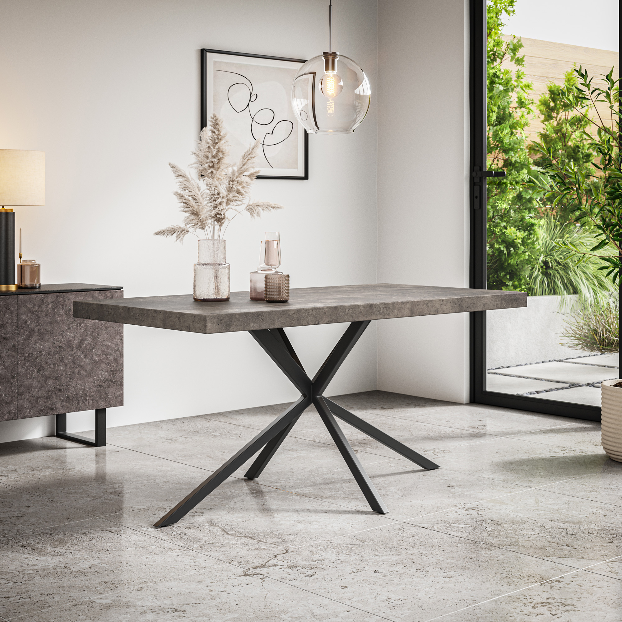 DONNI DINING TABLE AND CHAIRS - CONCRETE EFFECT TOP w BLACK LEGS + NOVA CHAIR