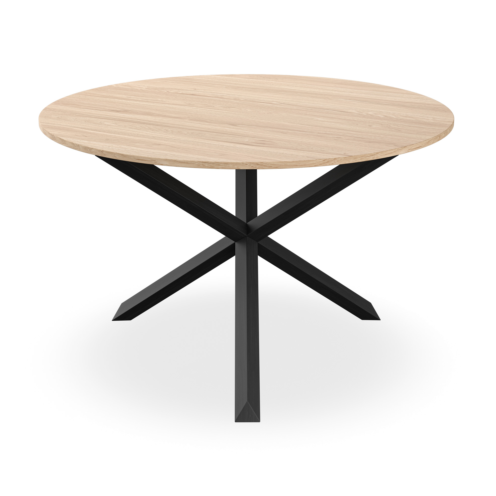 MALVERN ROUND DINING TABLE w SOLID BLACK OAK LEGS