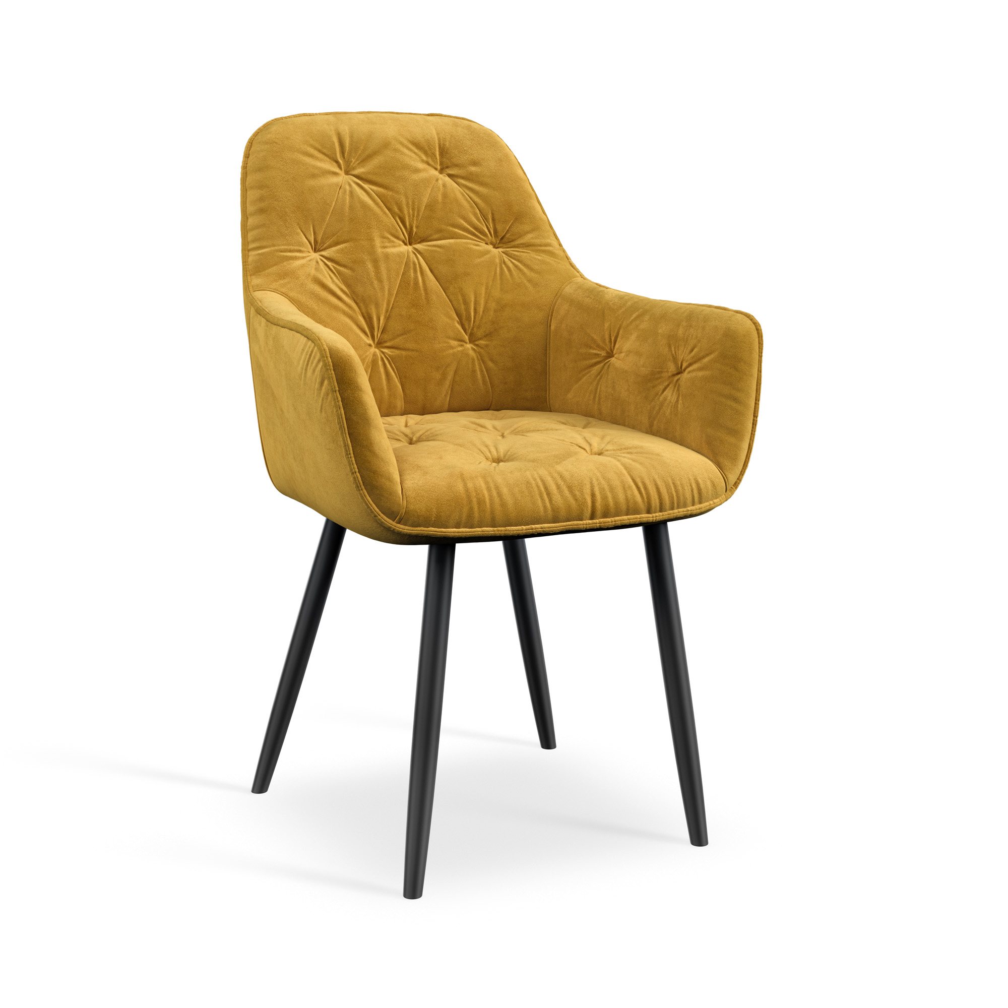 Metro Malvern Round Dining Table And Chairs - Table Top w Legs + Nova Velvet Dining Chair Set Of 4 Black/Oak/Mustard