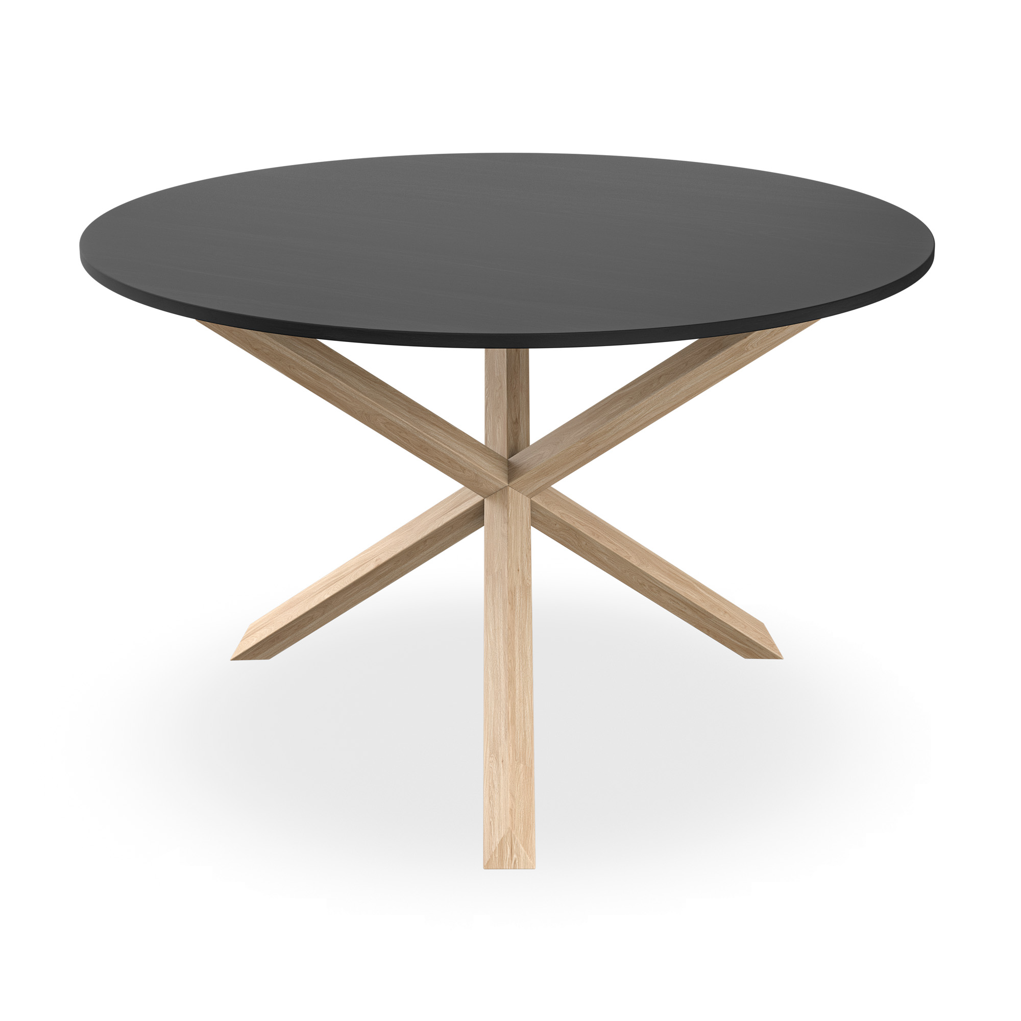 (The Malvern Dining Table can seat 4-6 people, and yet its compact round shape is perfect for maximizing space while creating an inviting and intimate dining experience. Oak, and Black), with 2 types of legs (Solid Oak and Black Solid Oak).