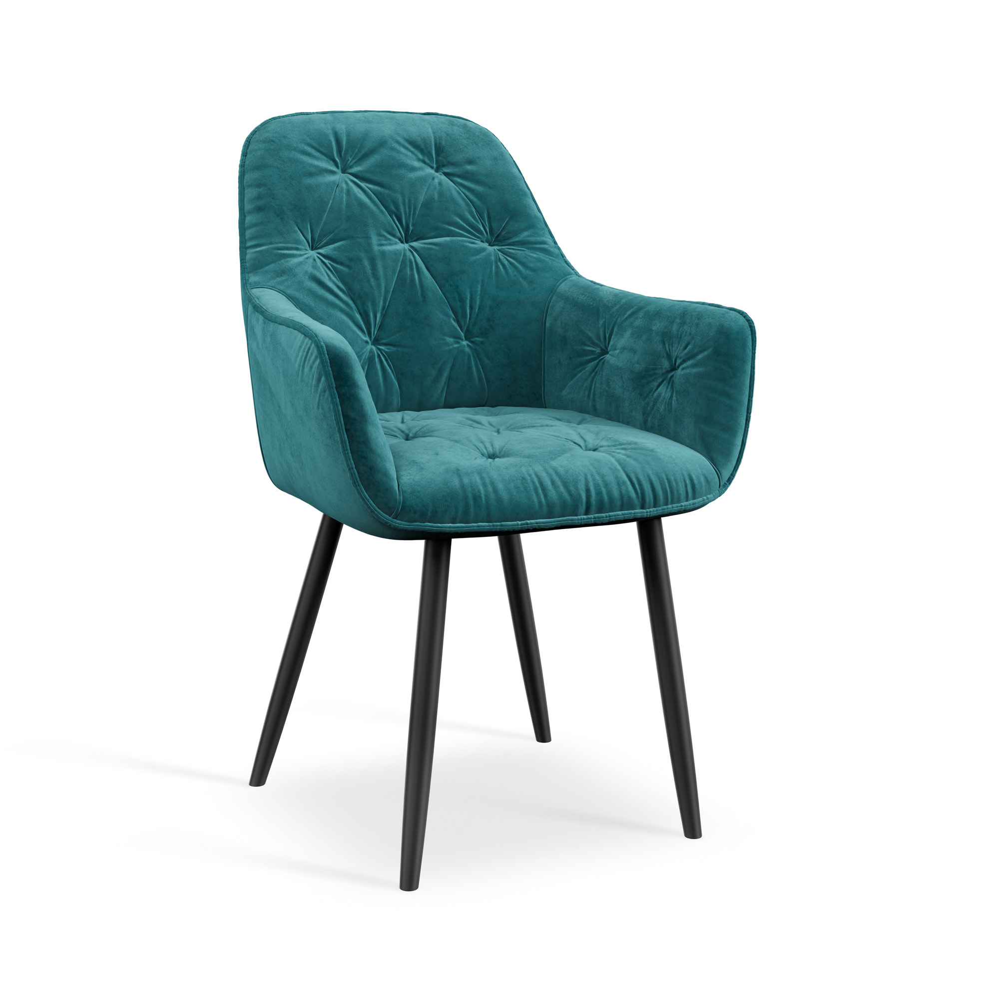 MALVERN ROUND DINING TABLE AND CHAIRS - BLACK TOP w OAK LEGS + ANIKA CHAIR