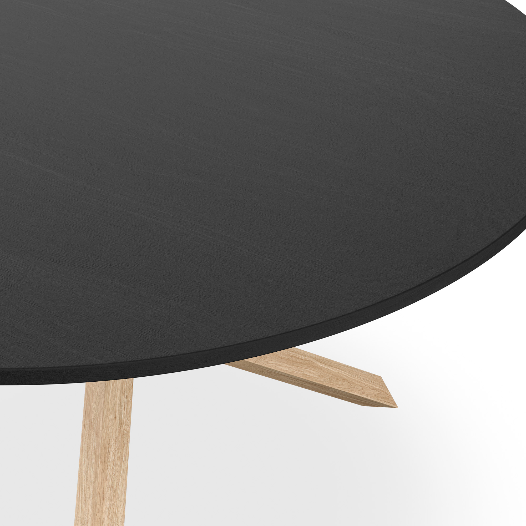 (The Malvern Dining Table can seat 4-6 people, and yet its compact round shape is perfect for maximizing space while creating an inviting and intimate dining experience. Oak, and Black), with 2 types of legs (Solid Oak and Black Solid Oak).
