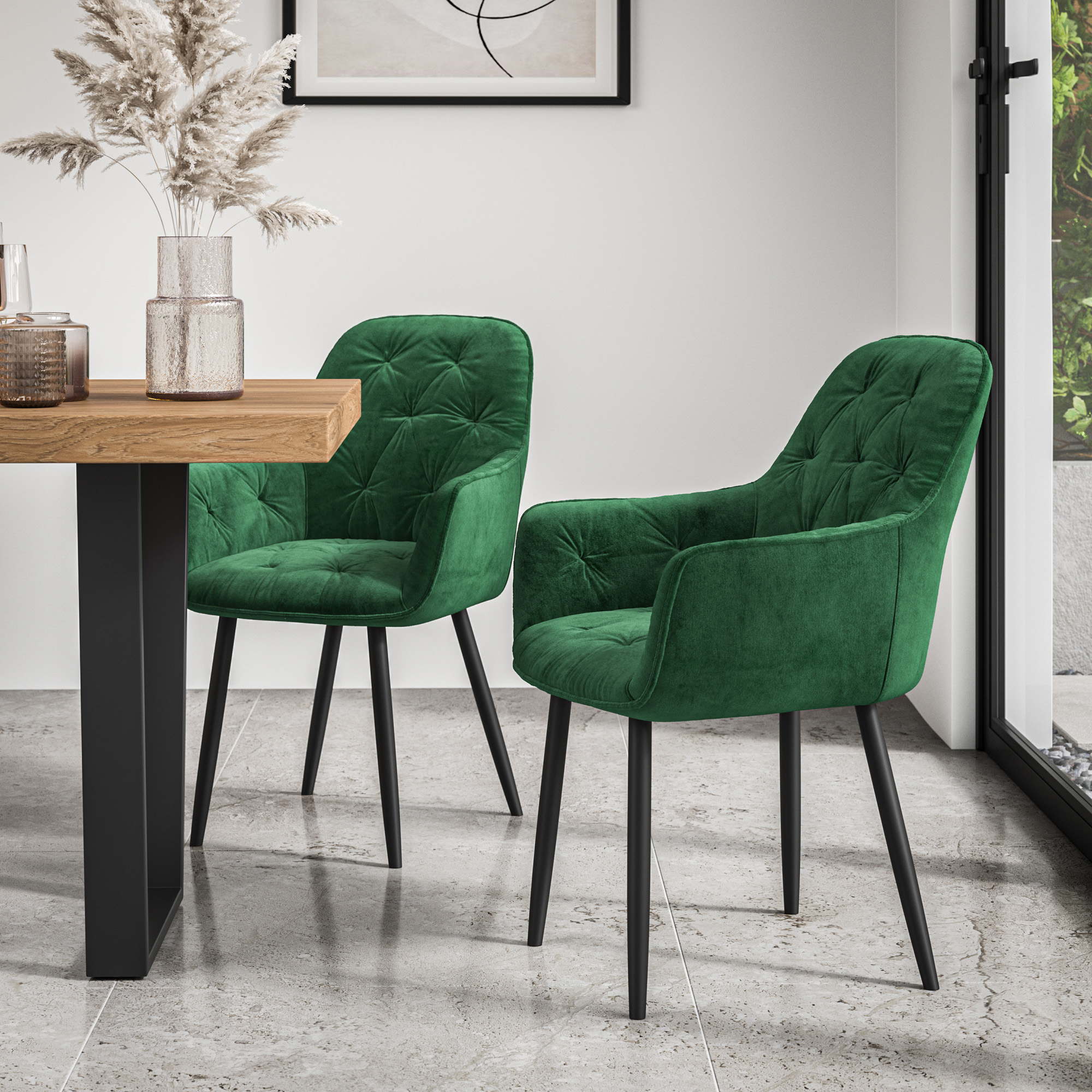 MALVERN ROUND DINING TABLE AND CHAIRS - BLACK TOP w OAK LEGS + ANIKA CHAIR