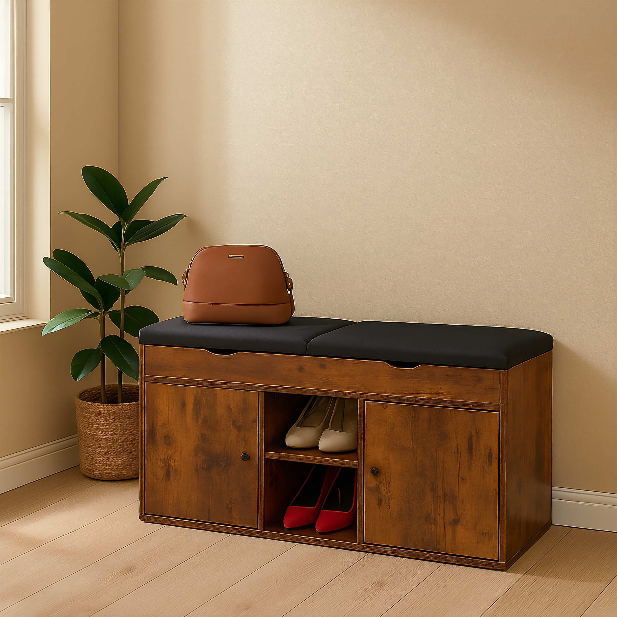 Shoe Bench Hallway Wooden Rack Storage Cabinet Cushion Seat Cupboard Organiser