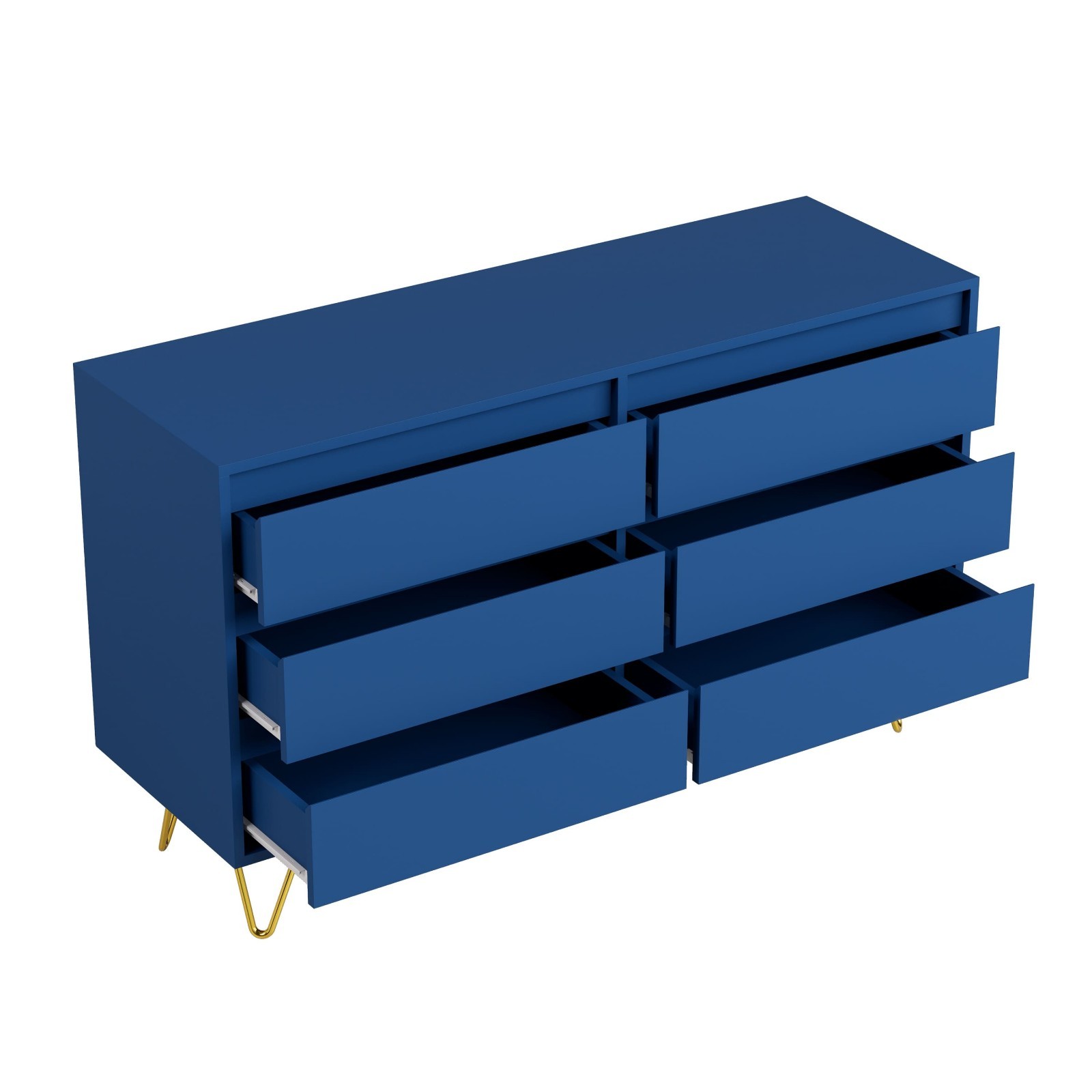 Chest of Drawers Wide 6 Drawer with Golden Leg Bedroom Storage Furniture Cabinet