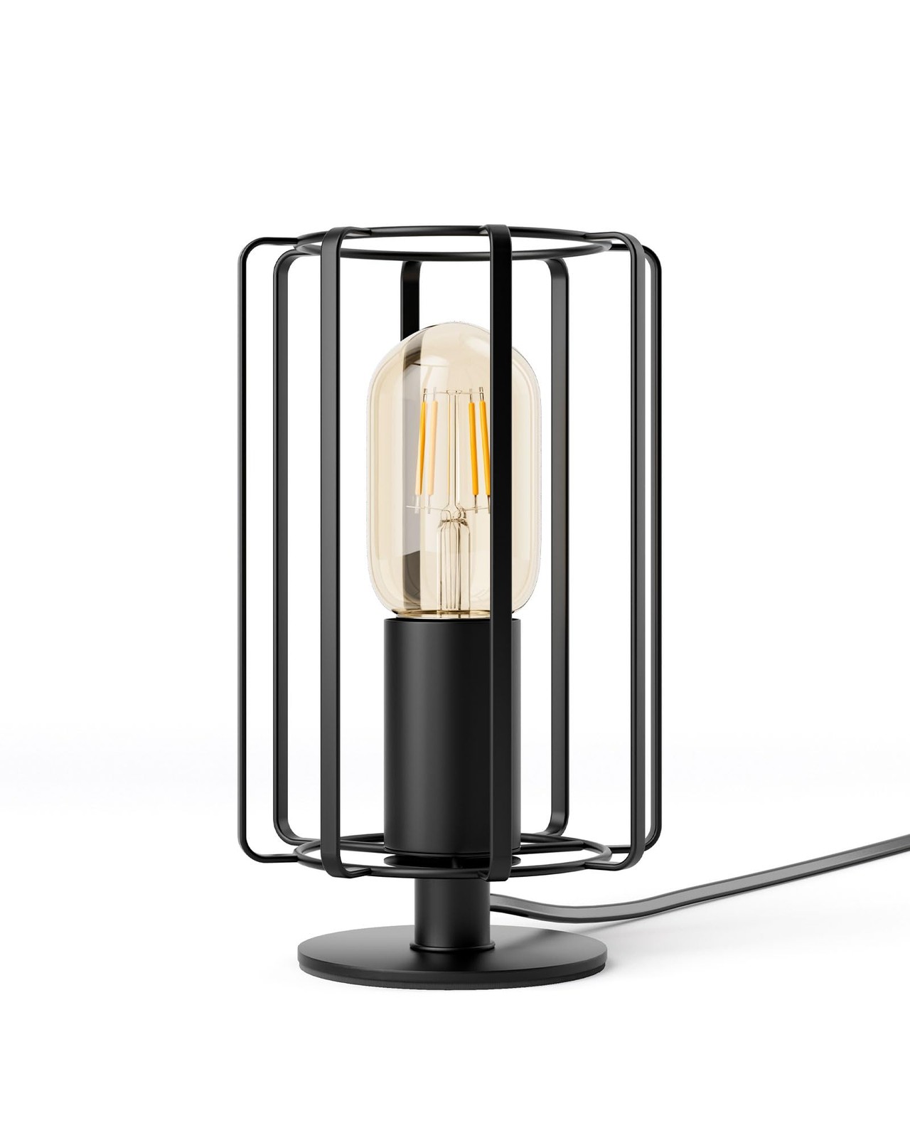 Table Lamp, Grid Light, led Bulb, Warm White, Battery, Wire, Vintage, Decorative, Industrial Design, Black - Relaxdays