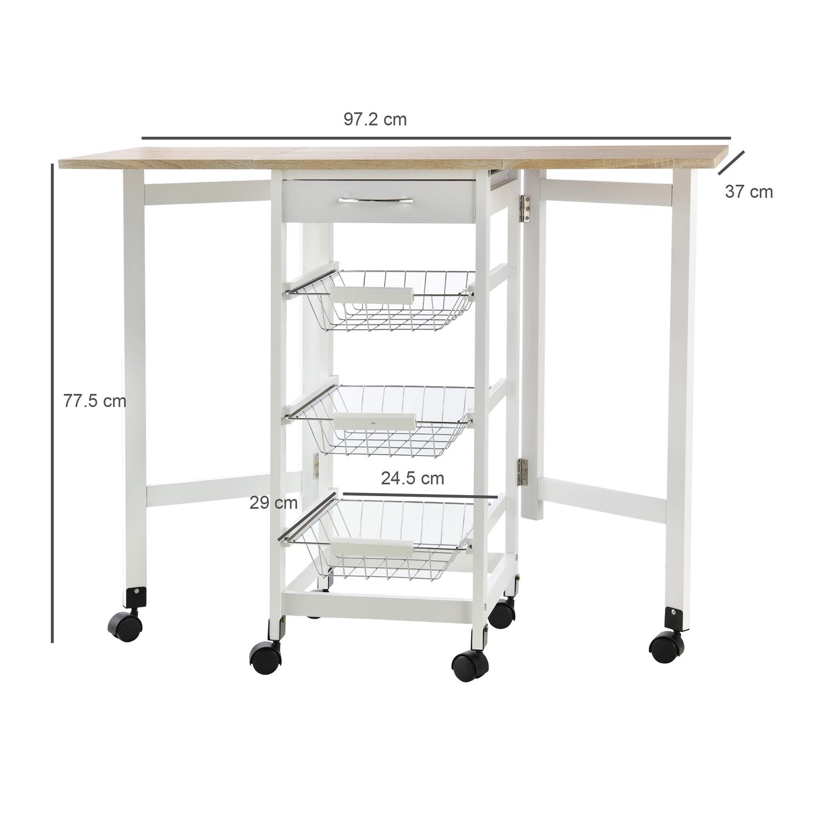 Kitchen Island on Wheels Storage Trolley Cart Drop Leaf Drawers Shelves White