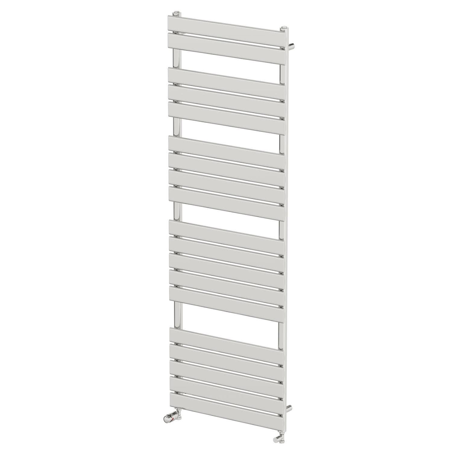 NRG - Designer Flat Panel Heated Bathroom Towel Rail Radiator White with Angled Chrome Valves 1200x450mm