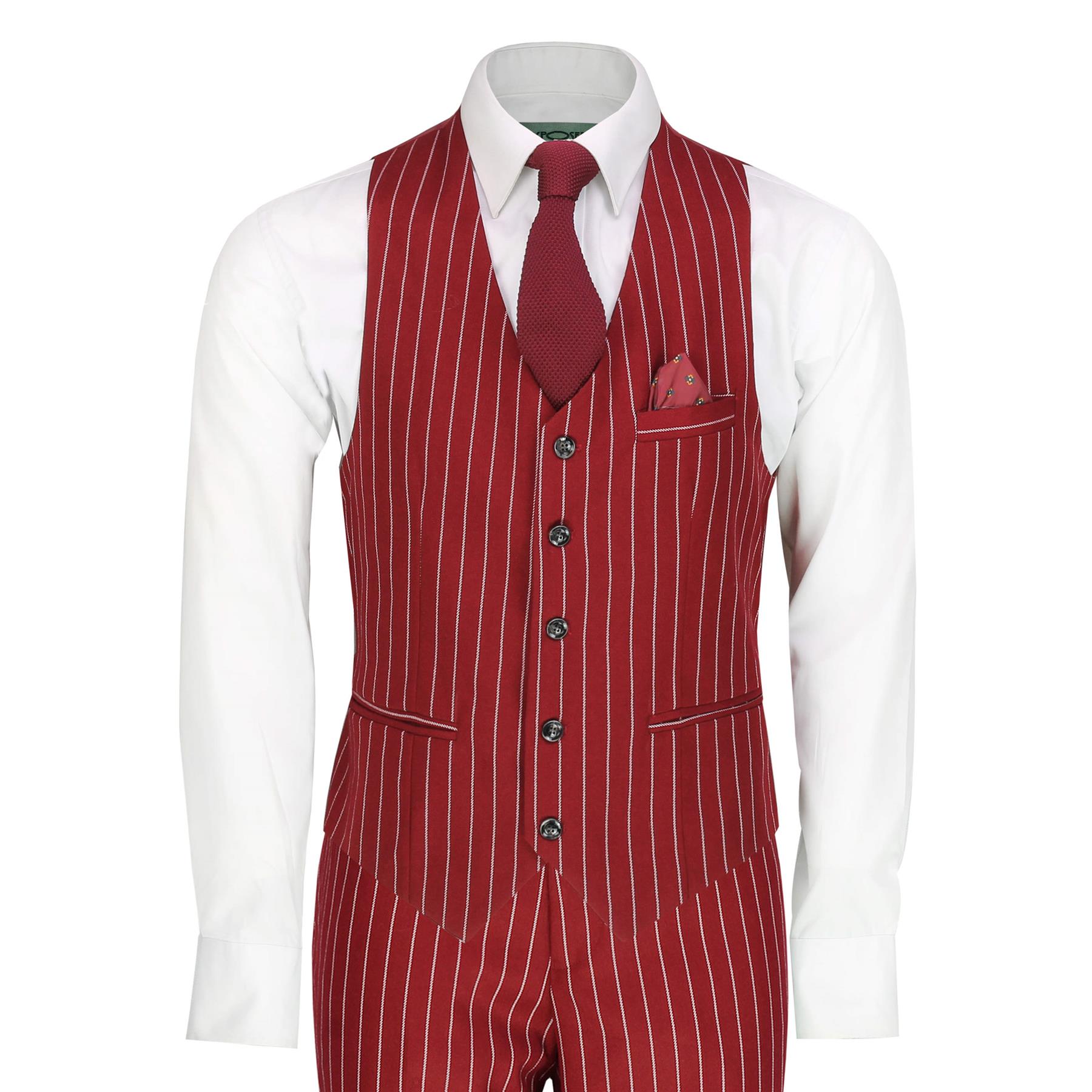 Mens 3 Piece Navy Double Breasted Suit 1920 Retro Pinstripe Classic Tailored Fit