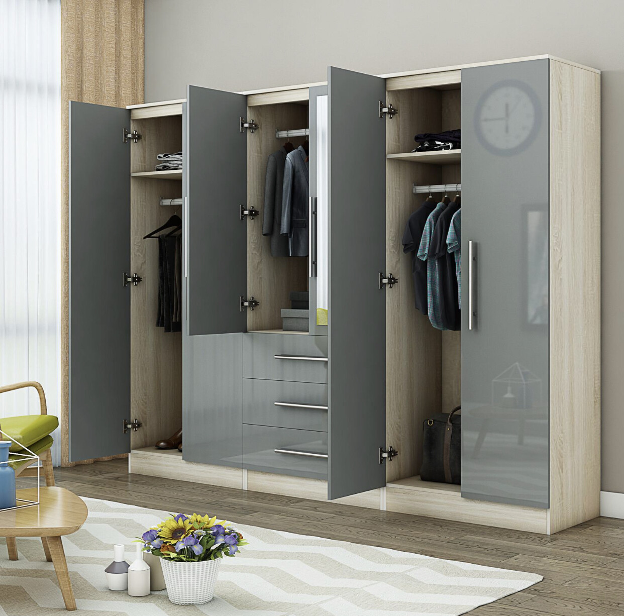 3 spacious roller drawers for extra storage. Elegant high gloss grey finish. 2 interior shelves – ideal for folded clothes or boxes. 🪵 Made from high-quality MDF/Chipboard with high gloss finish. Smooth door and drawer operation.