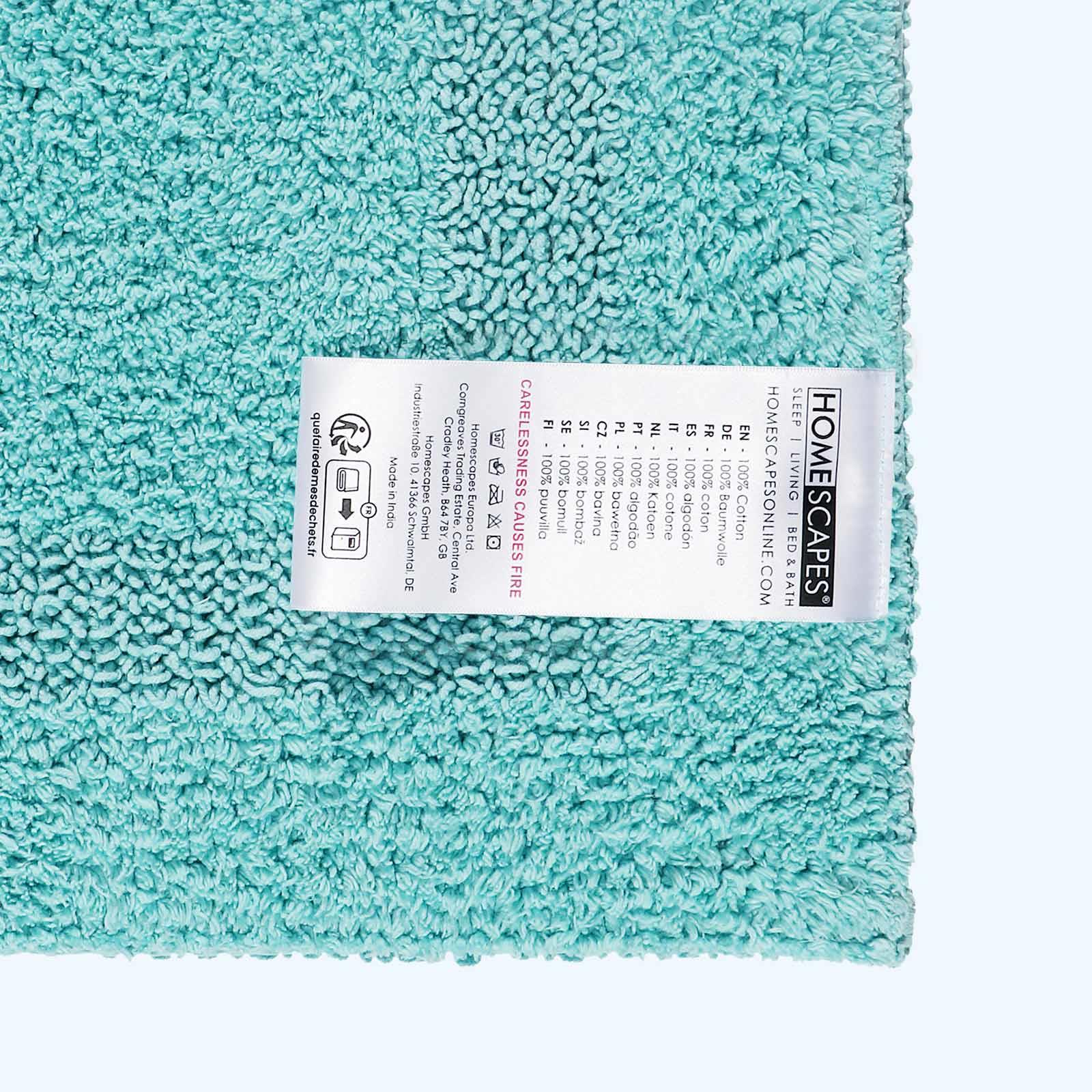Homescapes Luxury Square Bath Mat 1600GSM 100% Cotton Reversible Shower Mat, 50cm in Aqua Aqua