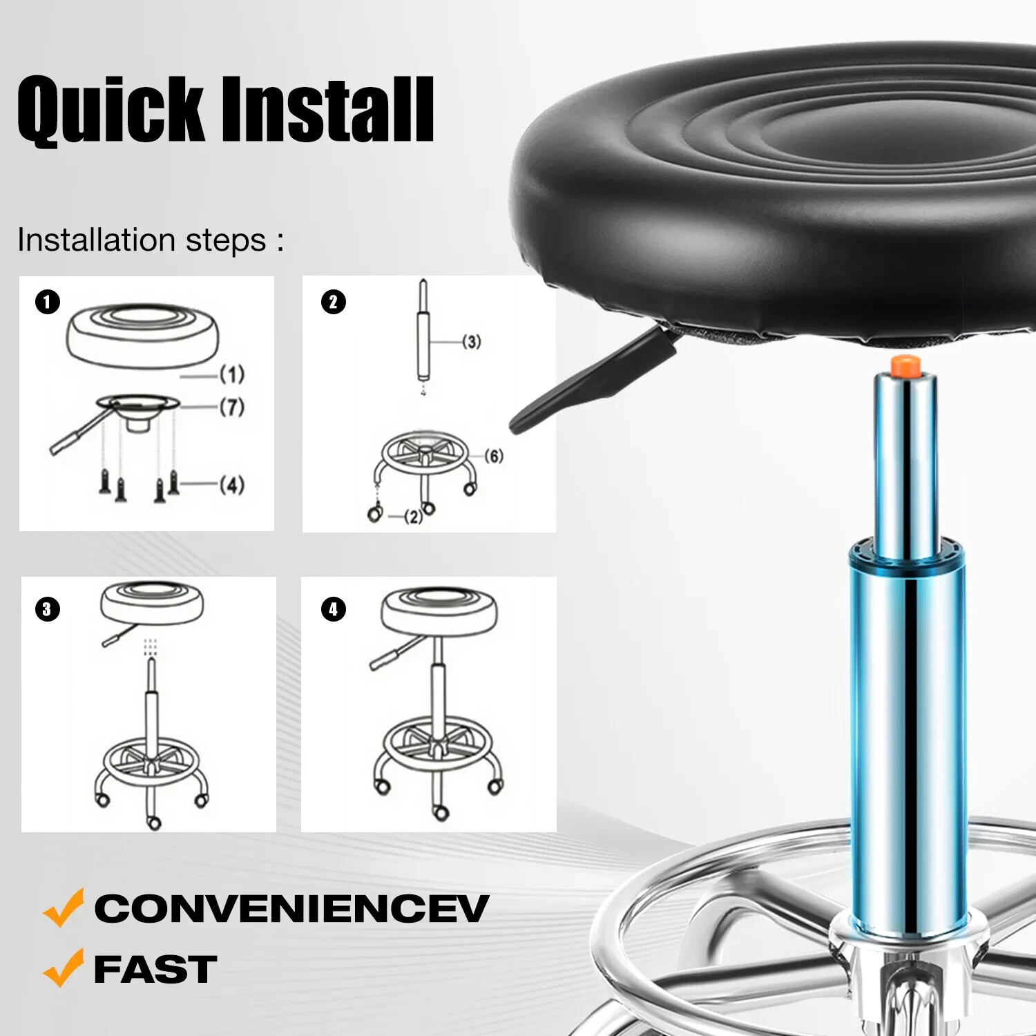 Black Adjustable Beauty Spa Salon Stool Massage lift Hairdressing Swivel Stool