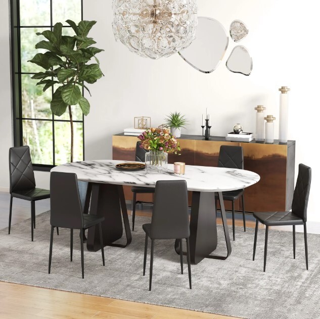 HOMCOM 6-Pieces Dining Chairs Faux Leather Kitchen Home Furniture Seat Black New