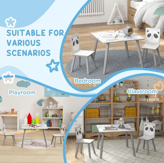 ZONEKIZ Kids Table & Chairs, Children Desk with 2 Chairs, Toddler Furniture Set in Grey Grey