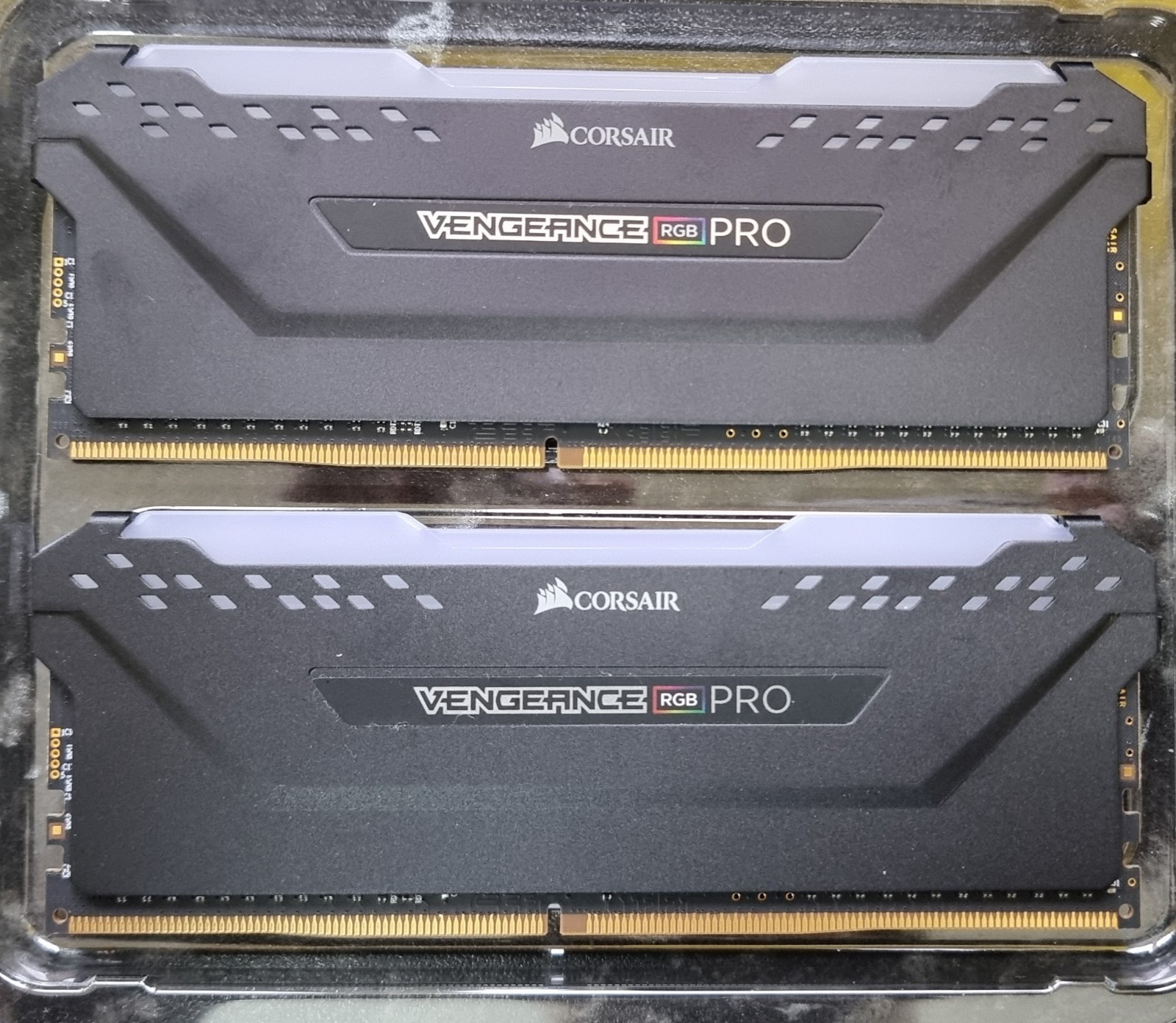 Genuine Corsair Vengeance RGB Pro DDR4 memory kit – 16GB total (2x8GB sticks). Removed from a working prebuilt PC after upgrading. Has been stored safely since and not used again. Specs: Brand: Corsair Model: Vengeance RGB Pro Capacity: 16GB (2x8GB) Speed: 3200MHz Latency: CL16 Voltage: 1.35V DDR4 Condition: Fully working when removed No physical damage Stored in protective packaging Great upgrade for gaming or general performance builds. RGB lighting looks great in tempered glass cases. Sold as seen – please ensure compatibility with your motherboard before purchase. No returns for compatibility issues.