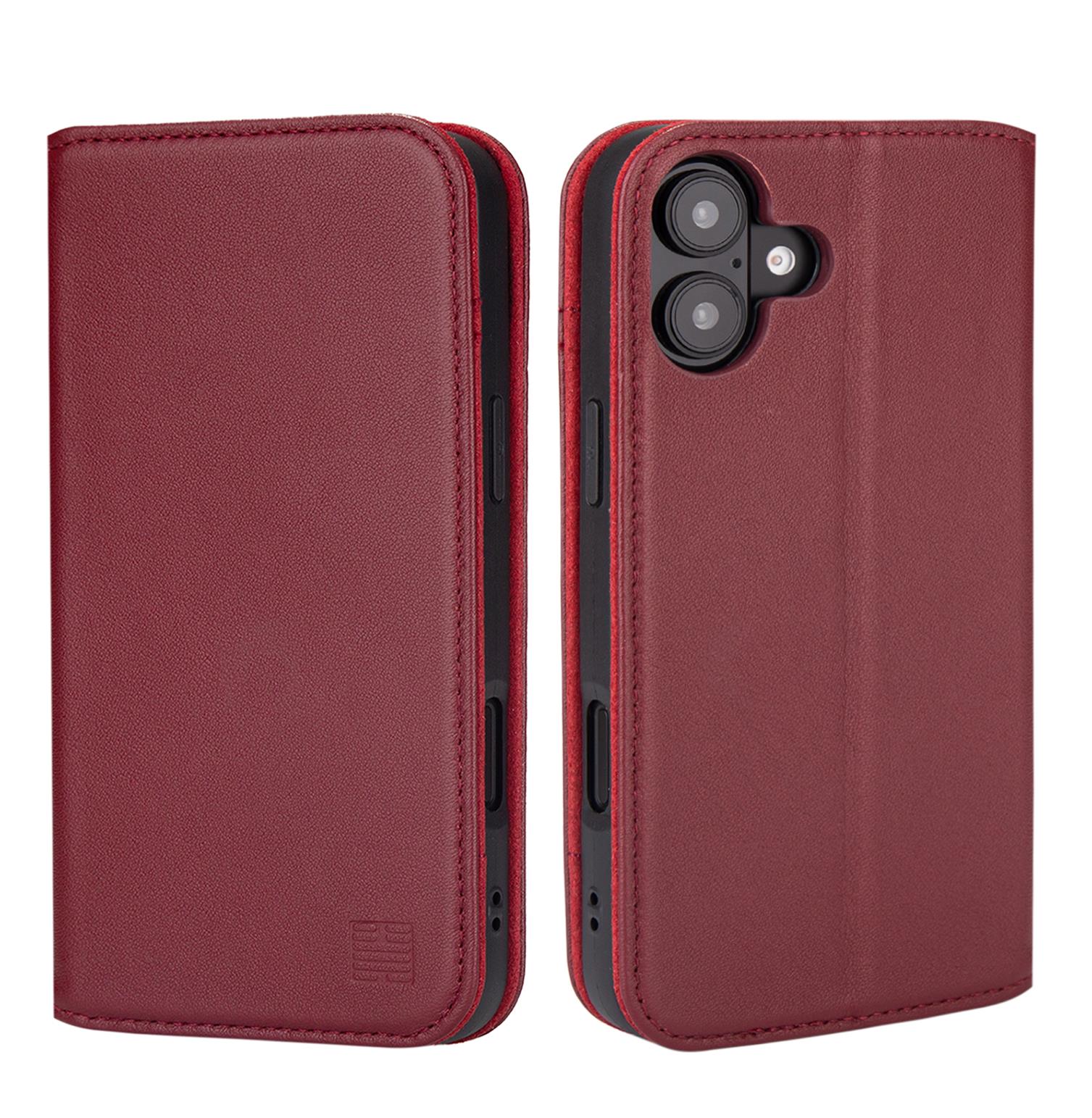 Real Leather Book Wallet Flip Case Cover For iPhone 16 (6.1").