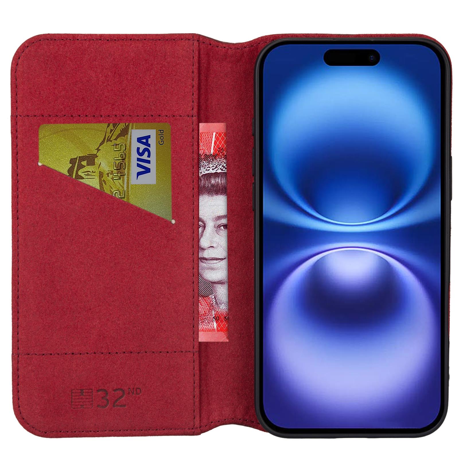 Real Leather Book Wallet Flip Case Cover For iPhone 16 (6.1")