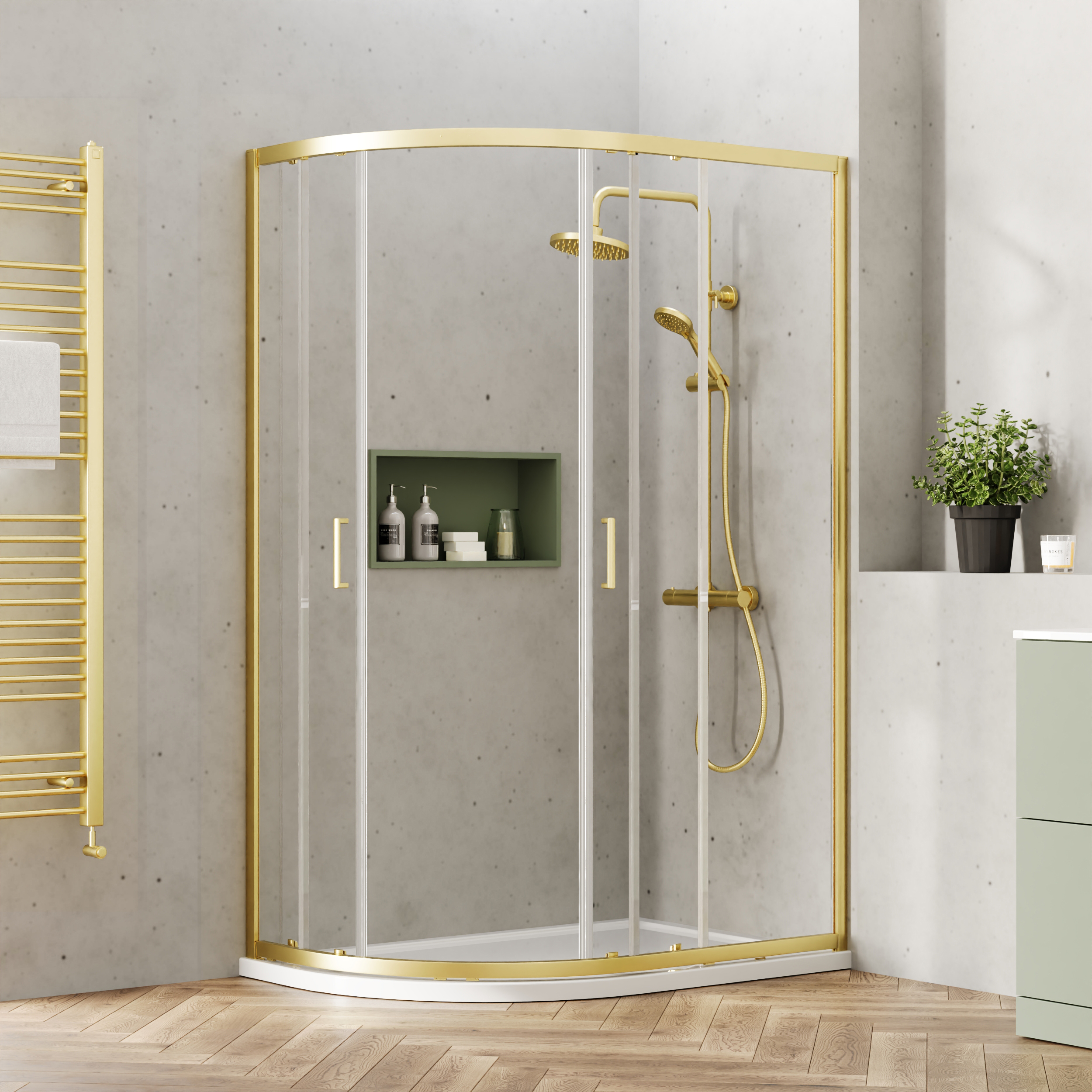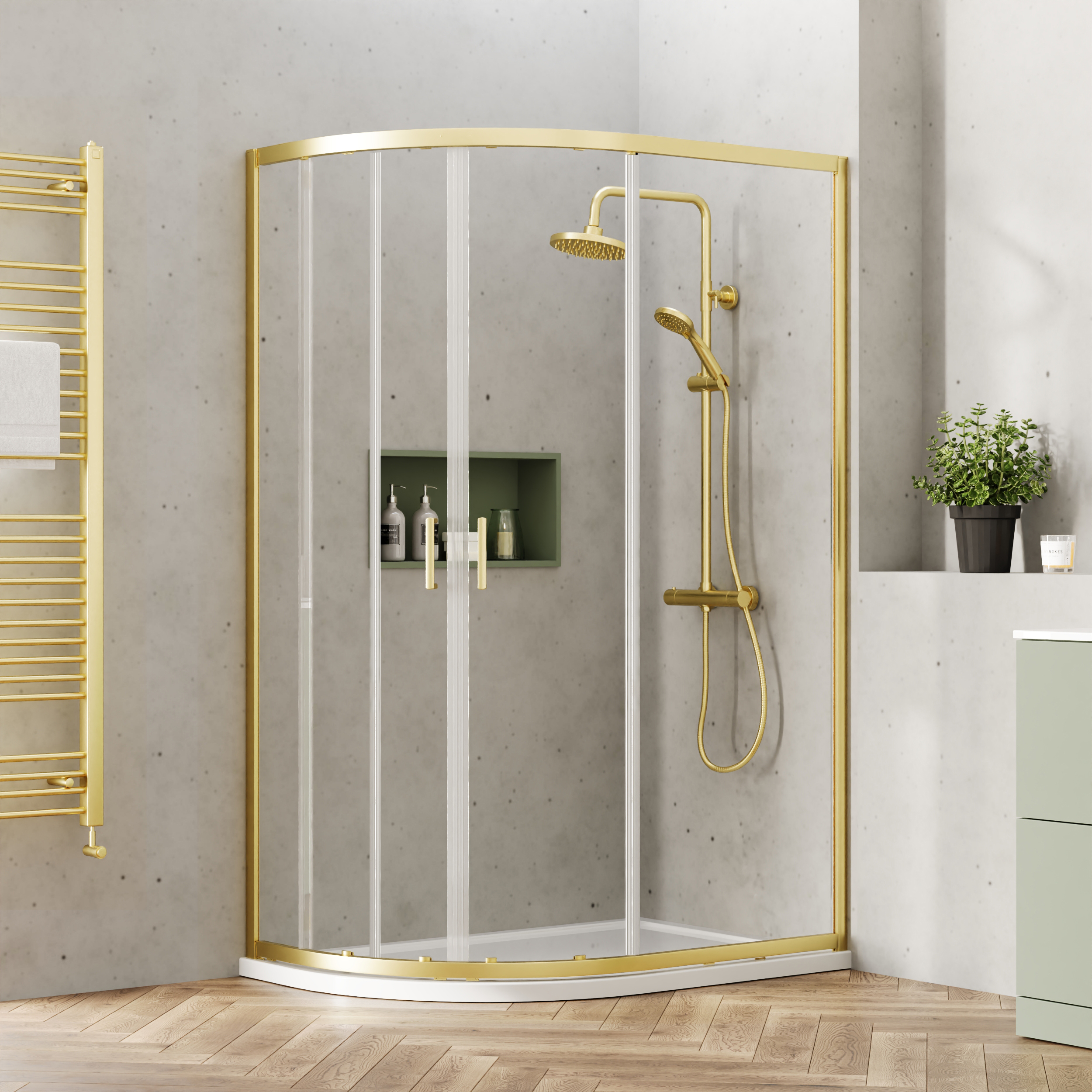 Ruwa 6mm Toughened Safety Glass Offset Quadrant Shower Enclosure - 1900 x 1200 x 800mm - Brushed Brass Balterley