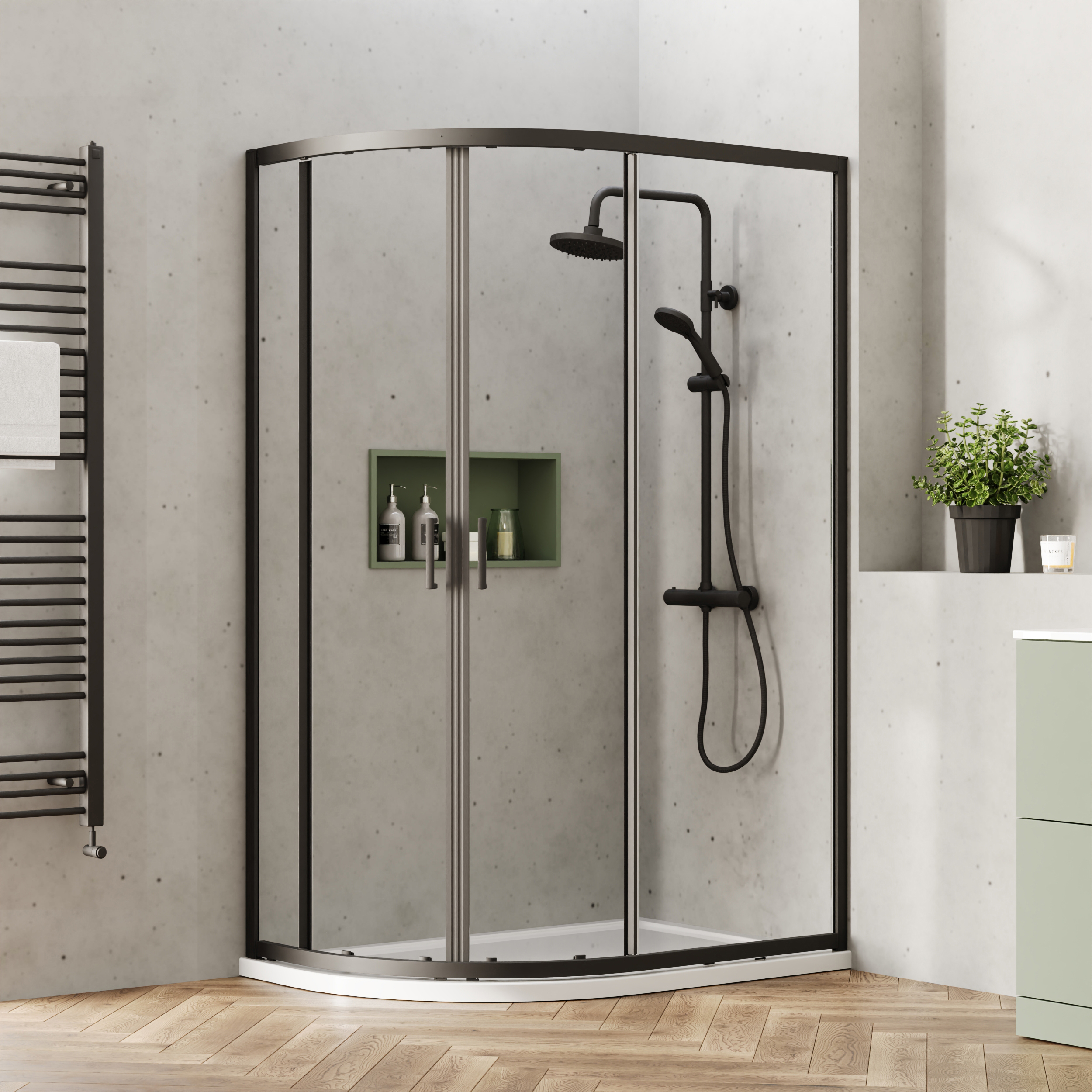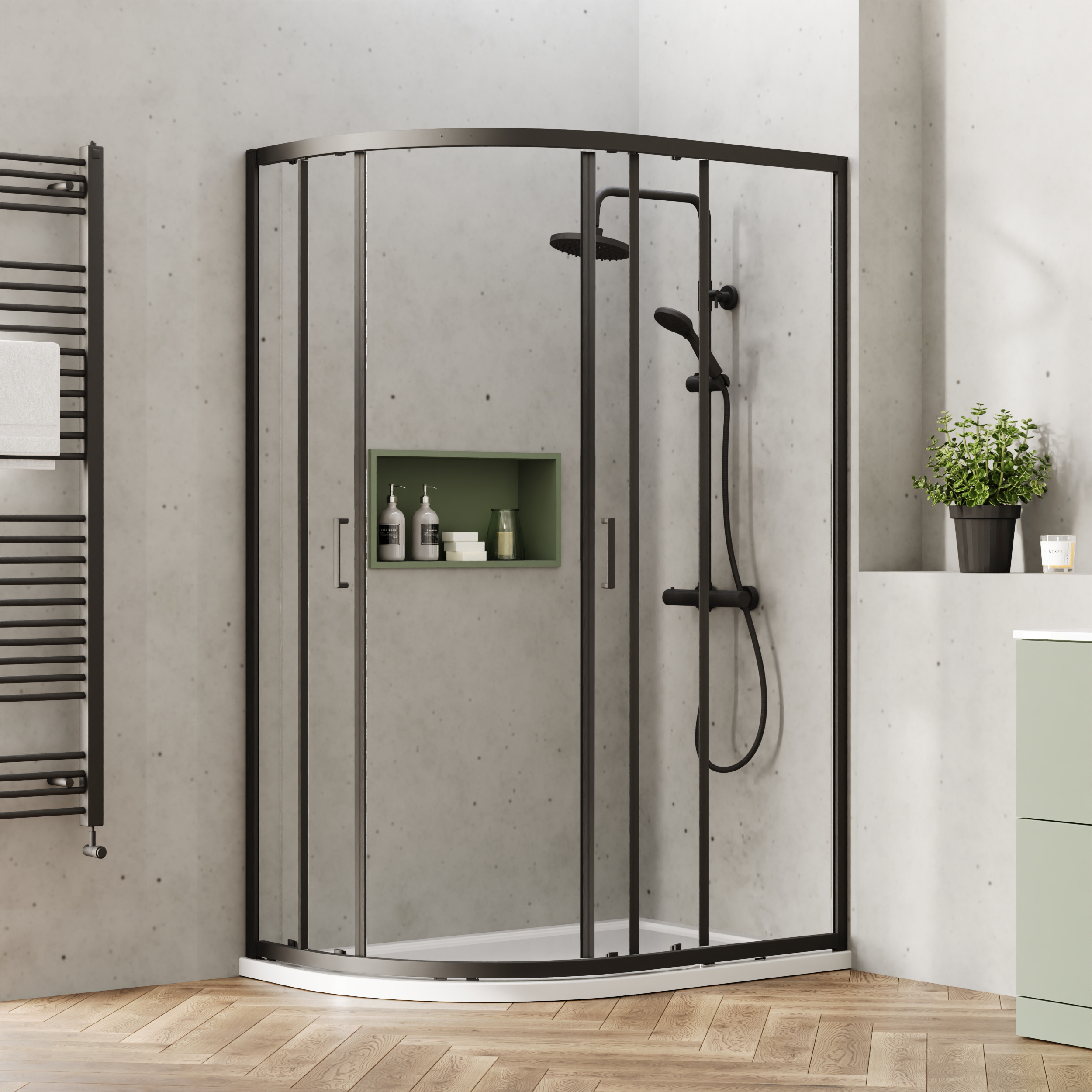 Ruwa 6mm Toughened Safety Glass Offset Quadrant Shower Enclosure - 1900 x 1200 x 800mm - Matt Black Balterley