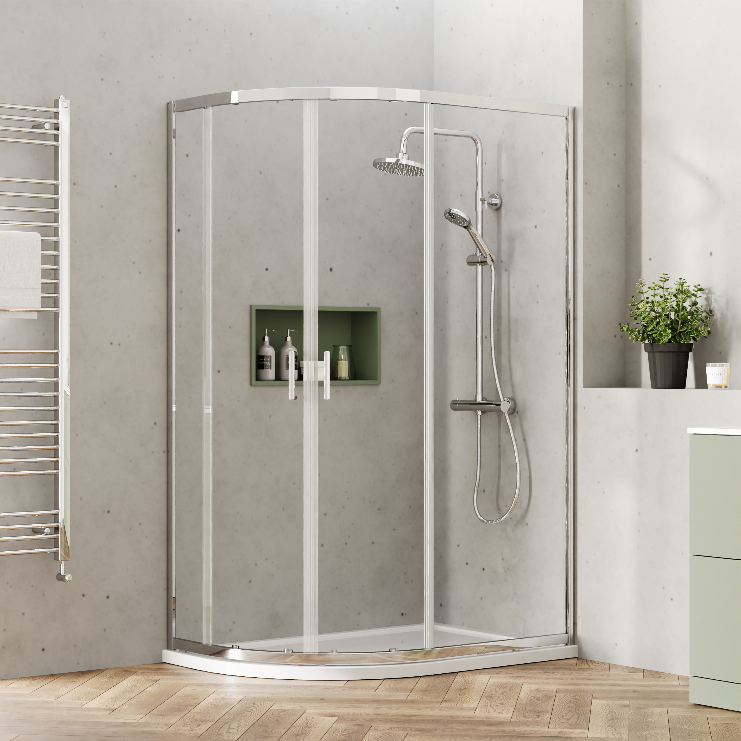 Ruwa 6mm Toughened Safety Glass Offset Quadrant Shower Enclosure - 1900 x 1200 x 800mm - Chrome Balterley