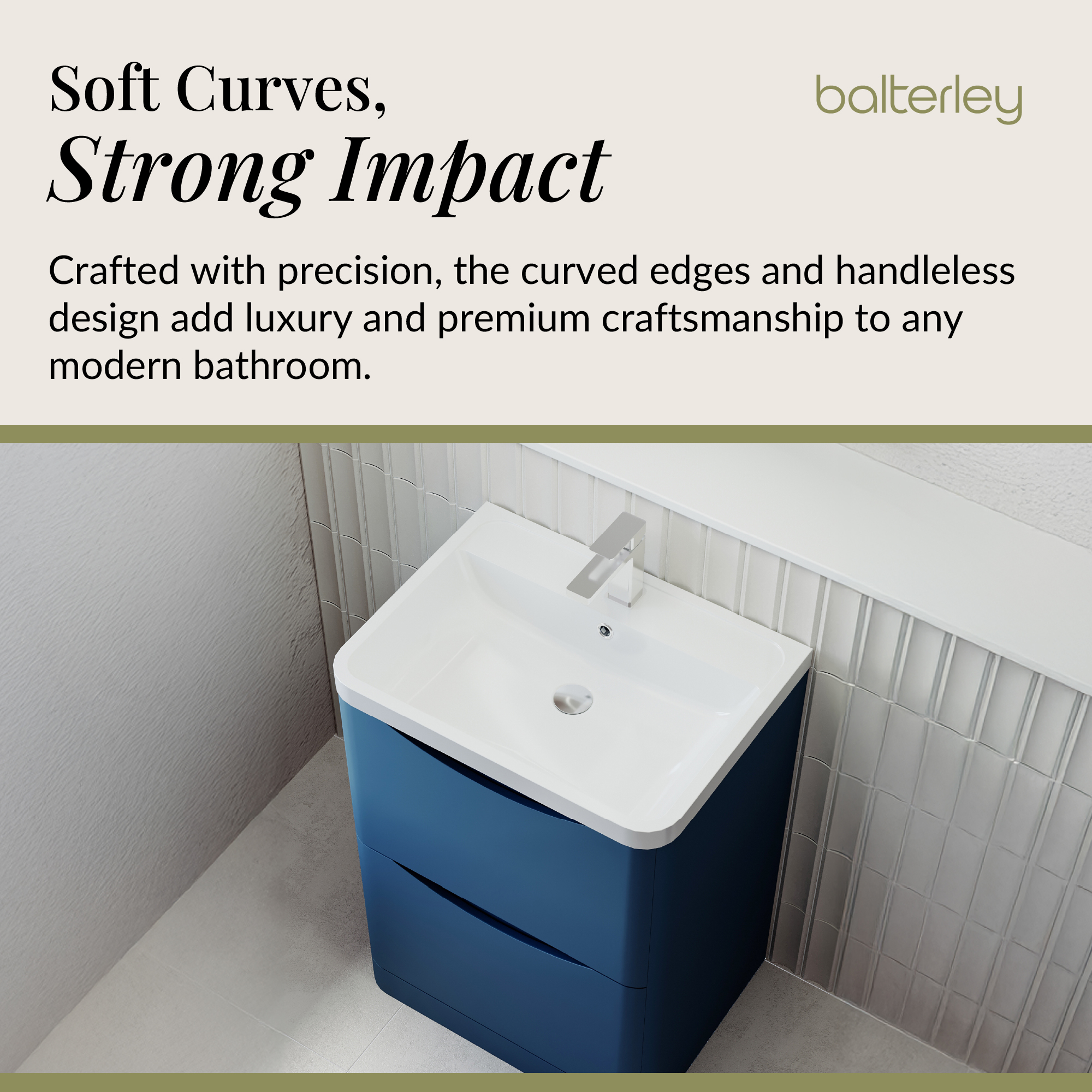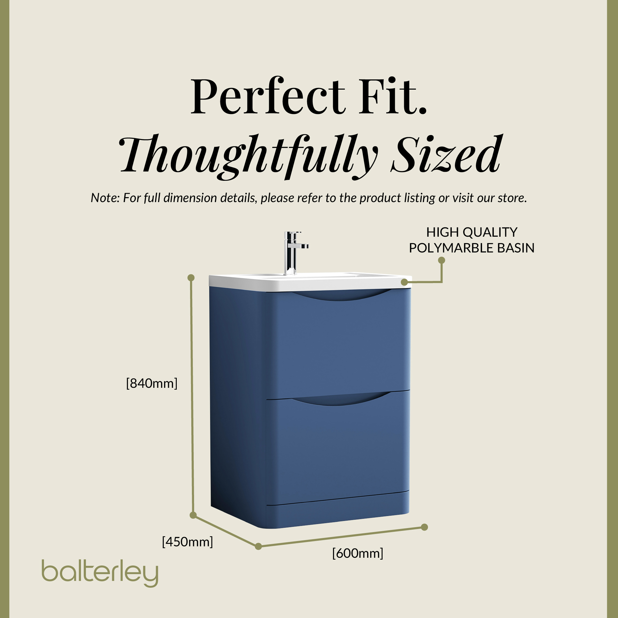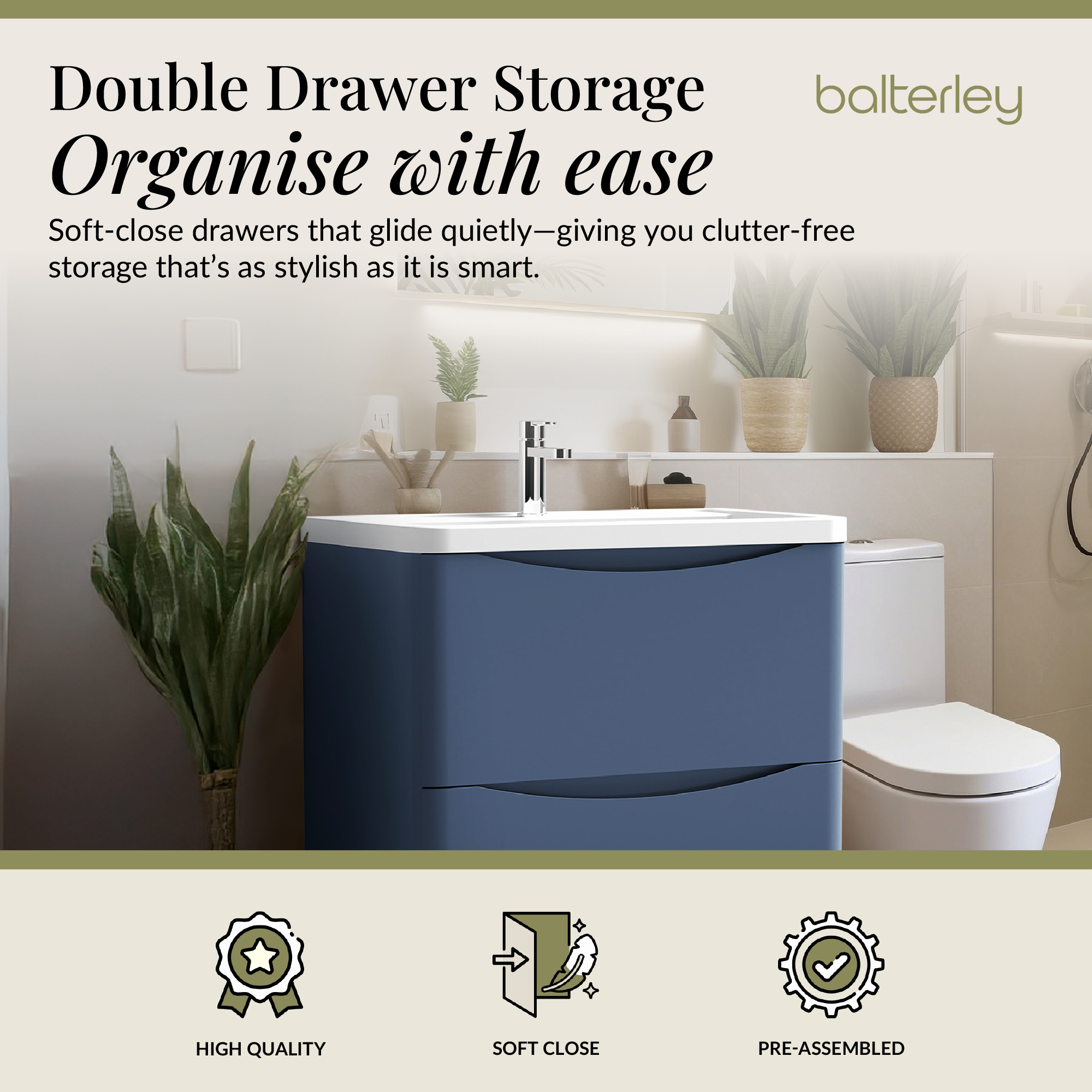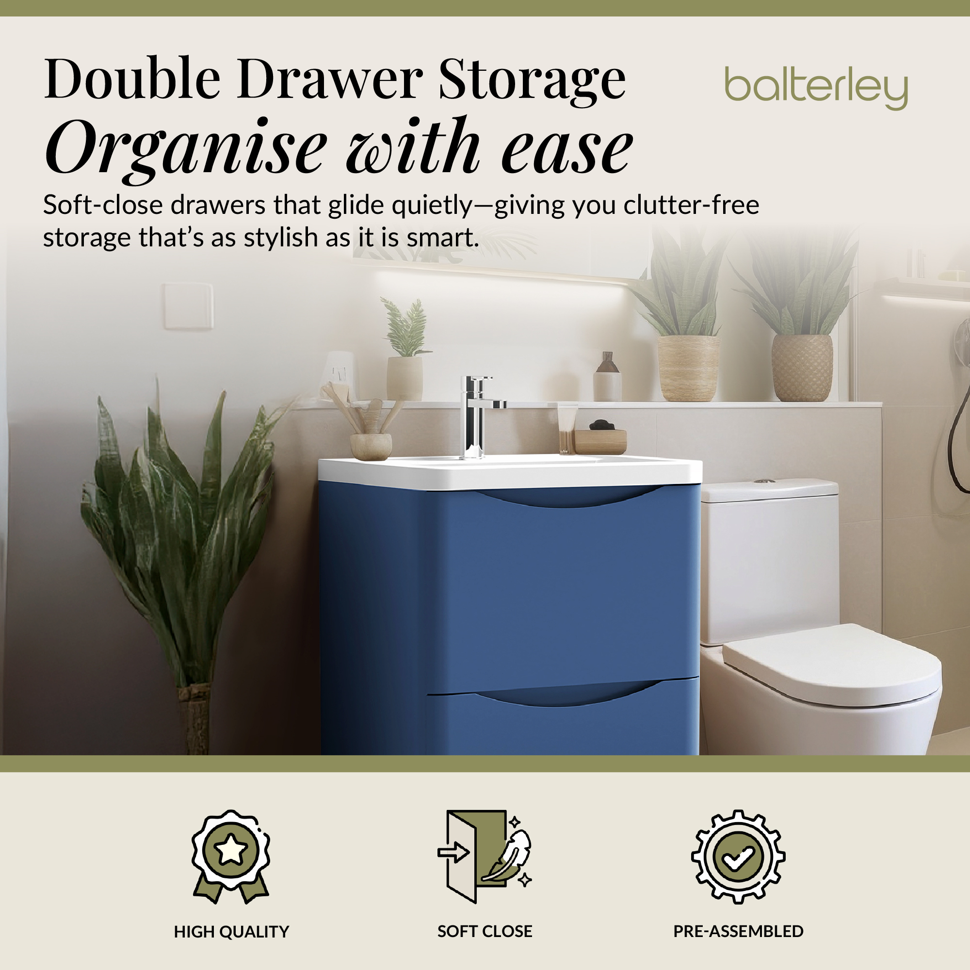 Niko Satin Green 600 Floor Standing 2 Drawer Vanity Unit & Polymarble Basin