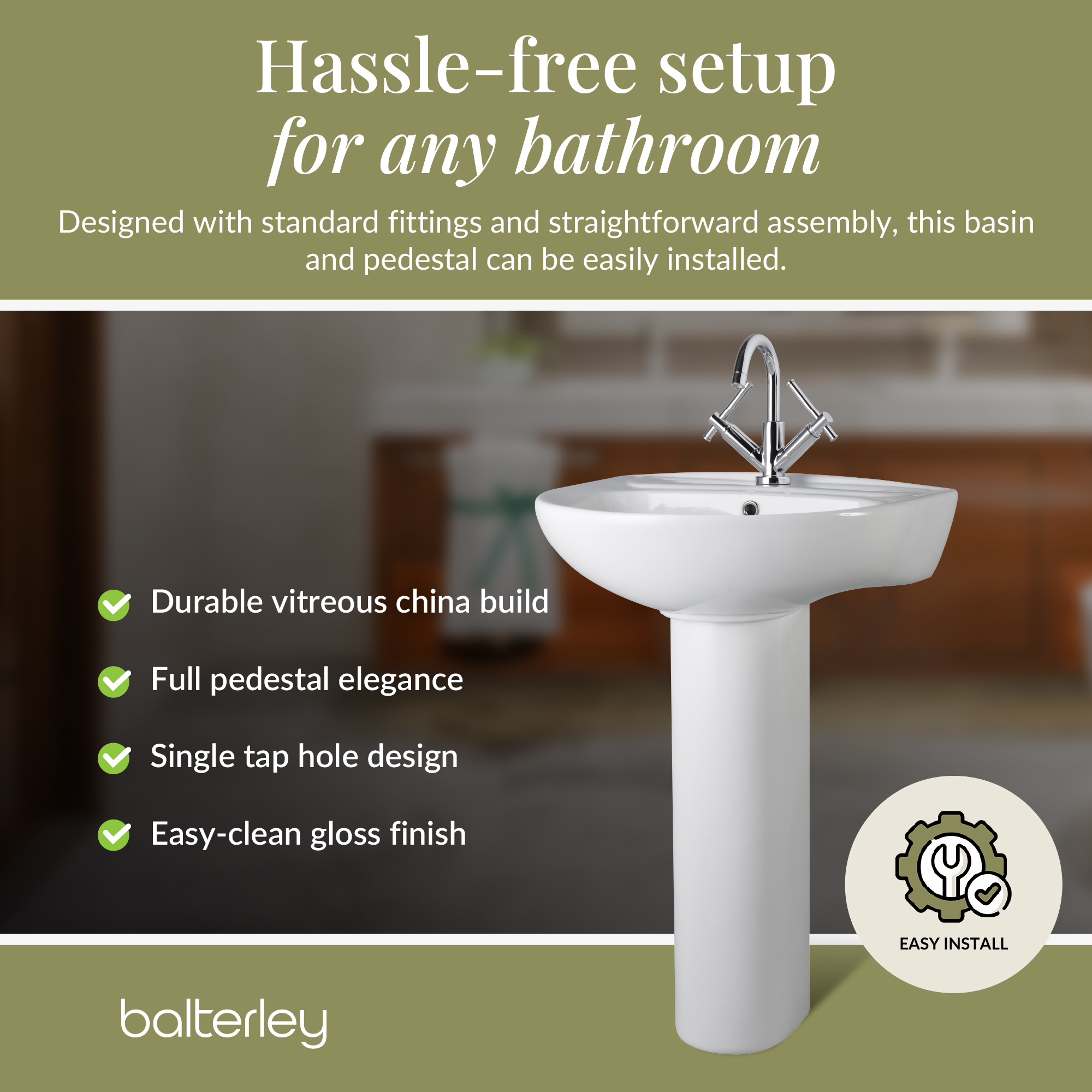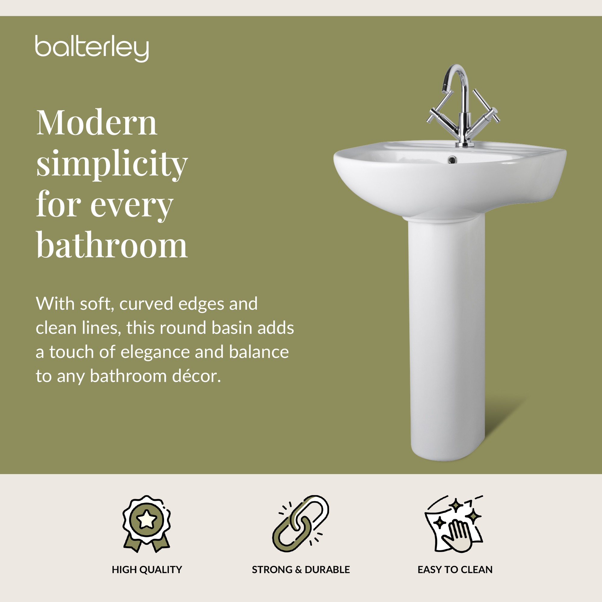 Balterley - Round Ceramic 1 Tap Hole Basin & Full Pedestal - 550mm