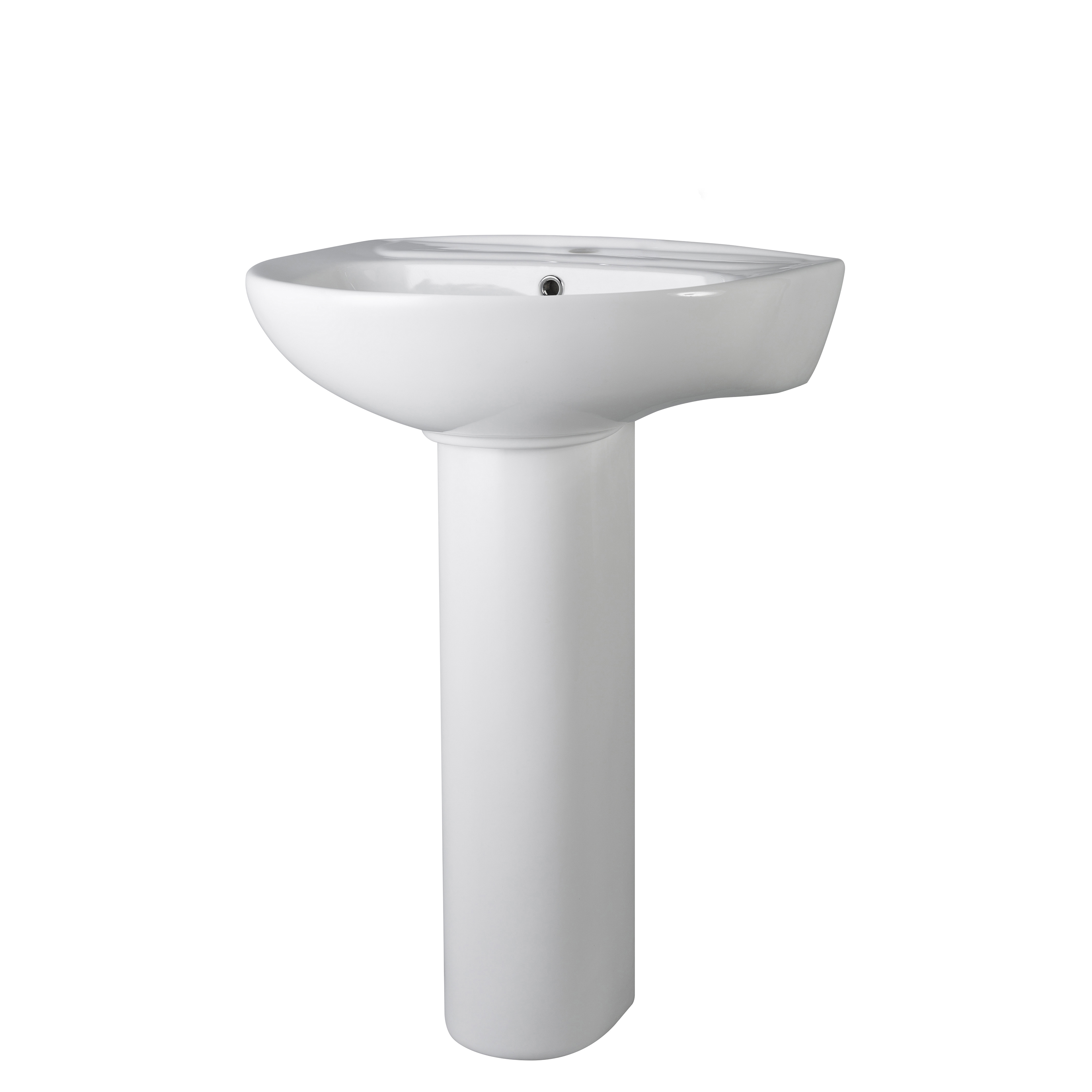 Bathroom 545mm Wash Basin & Full Pedestal 1 Tap Hole White Ceramic Modern Sink
