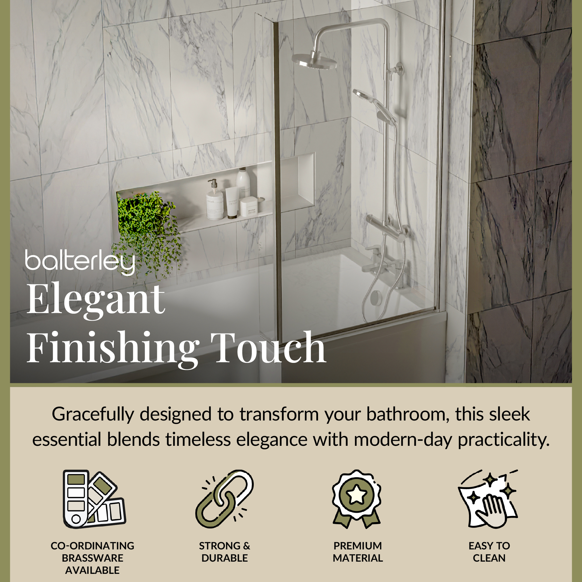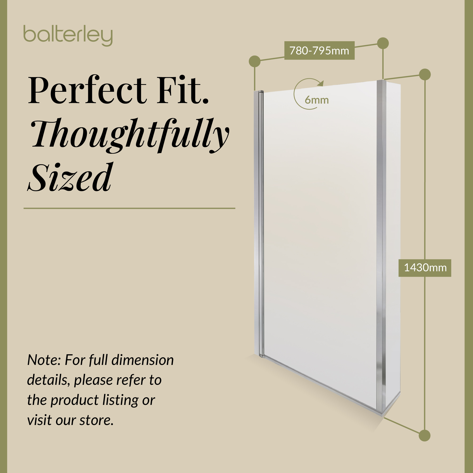 6mm Toughened Safety Glass Bath Screen - Balterley - Choose Colour