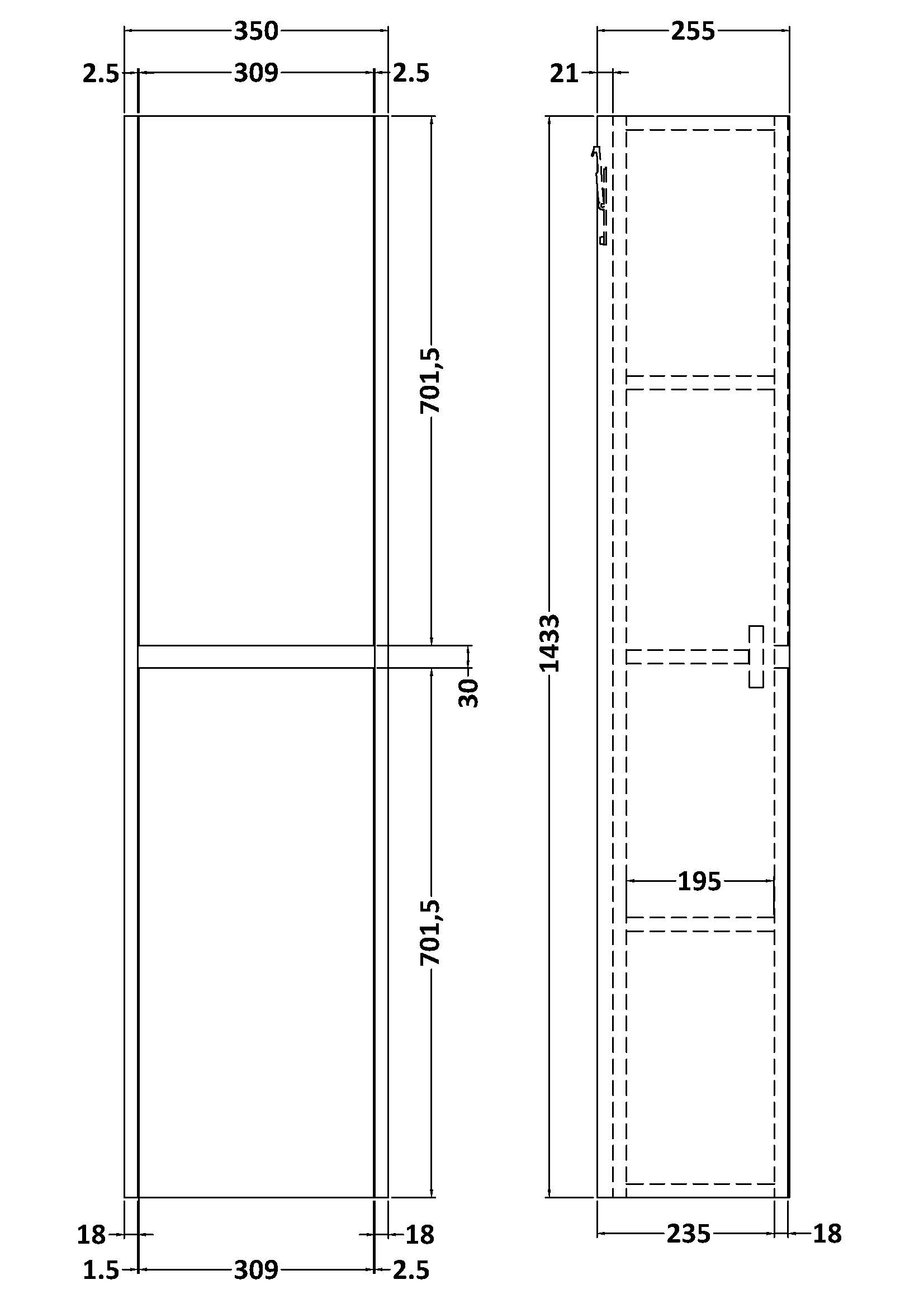 BALTERLEY Square Wall Hung 2 Door Tall Bathroom Unit, 350mm - Matt Coastal Grey