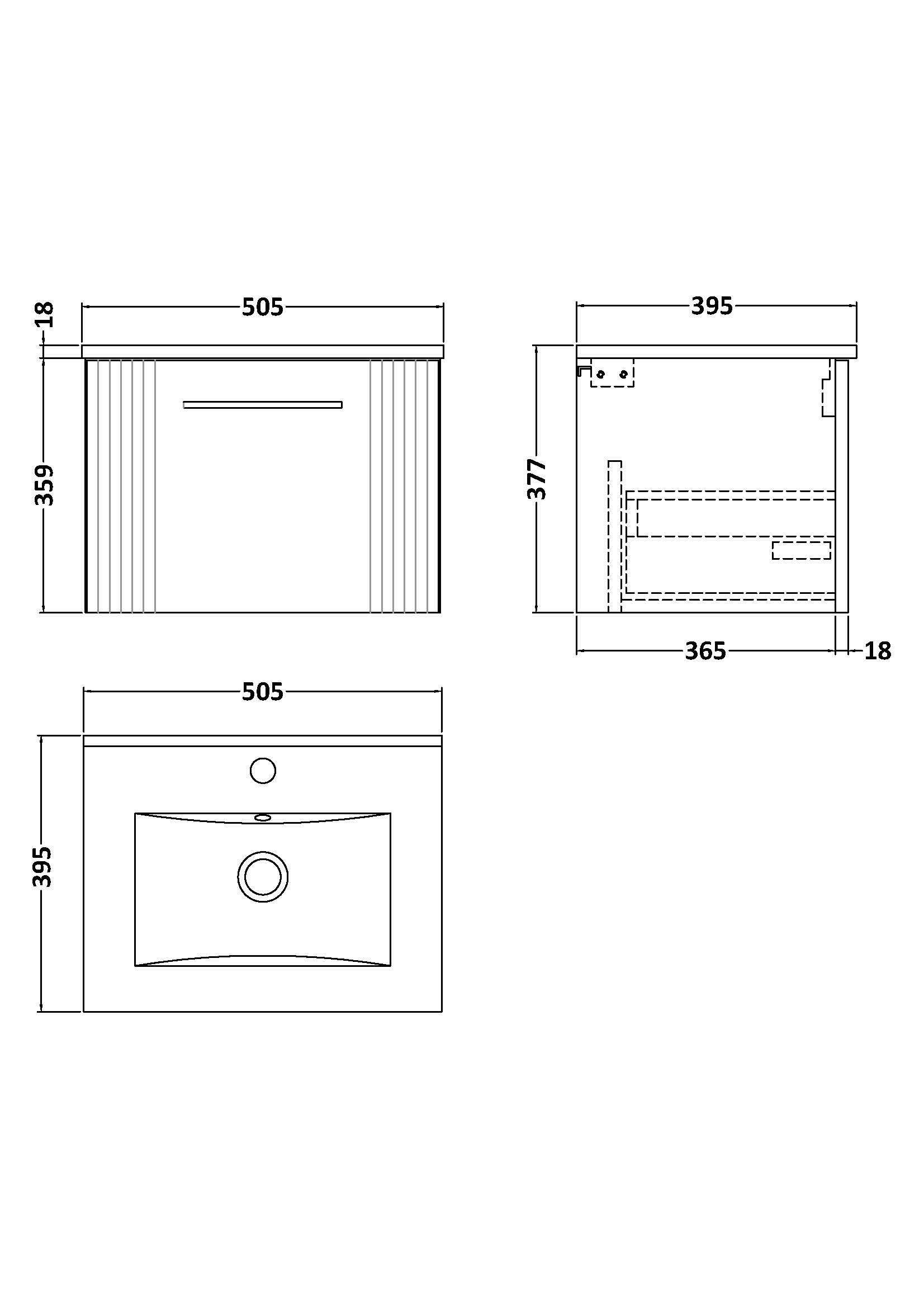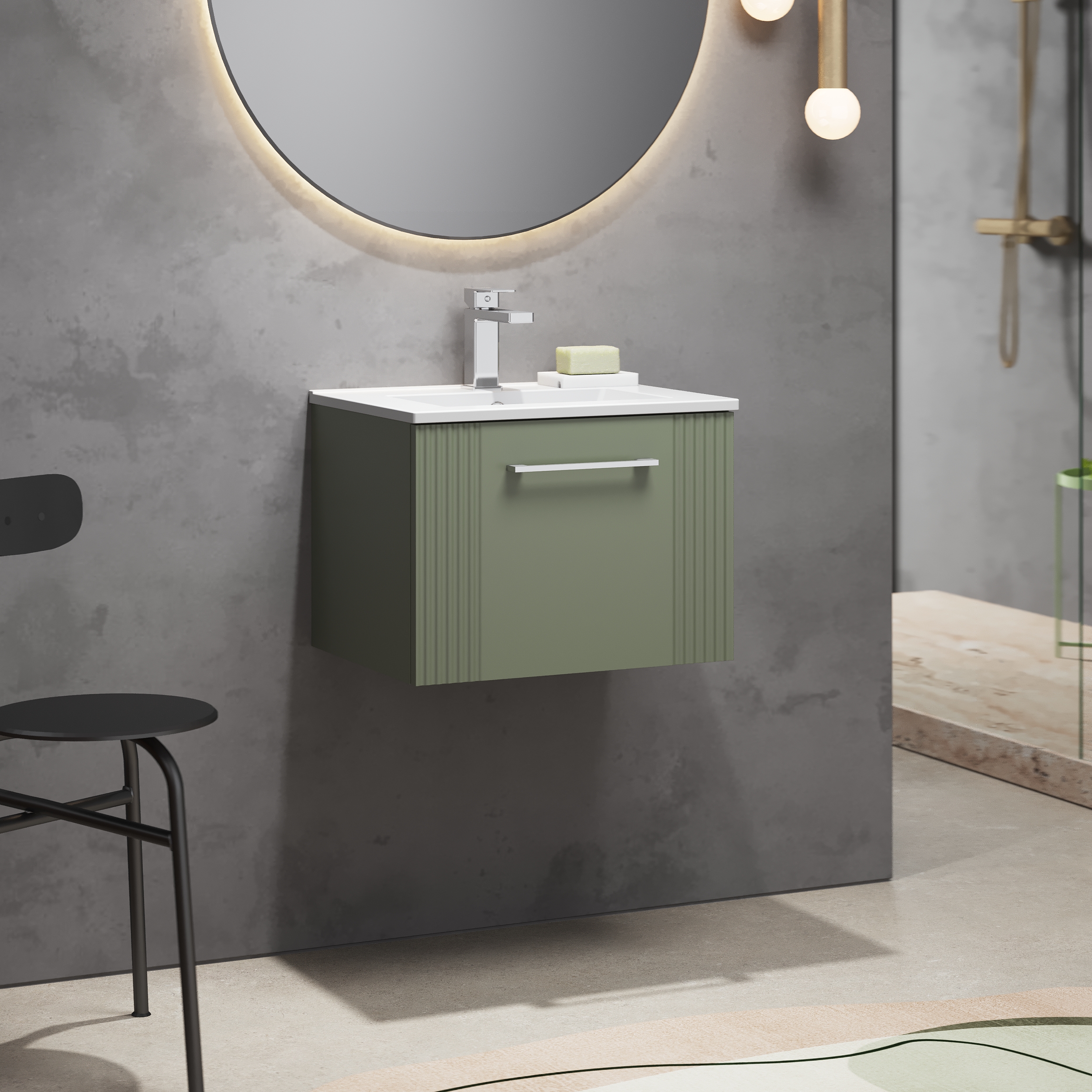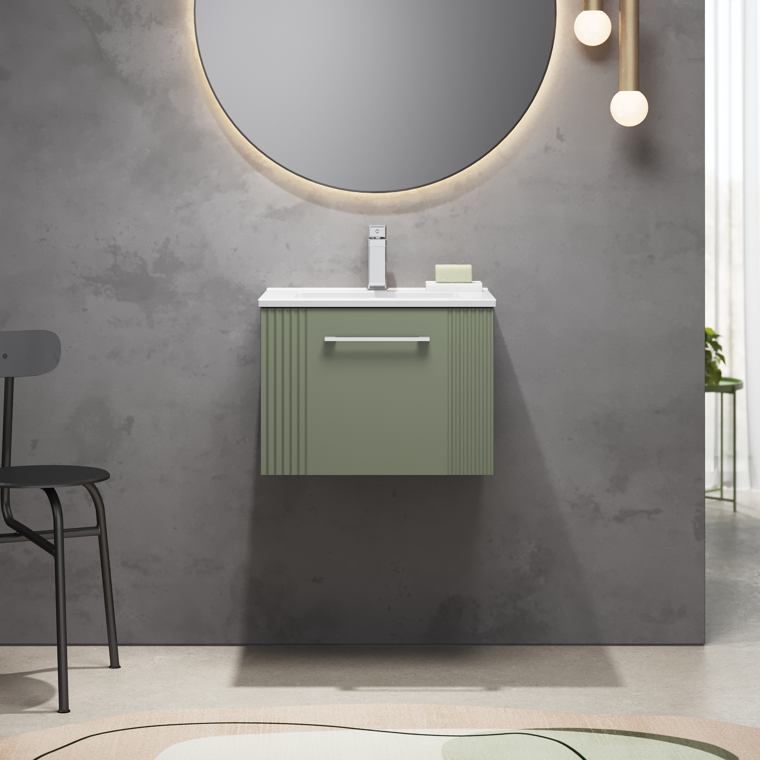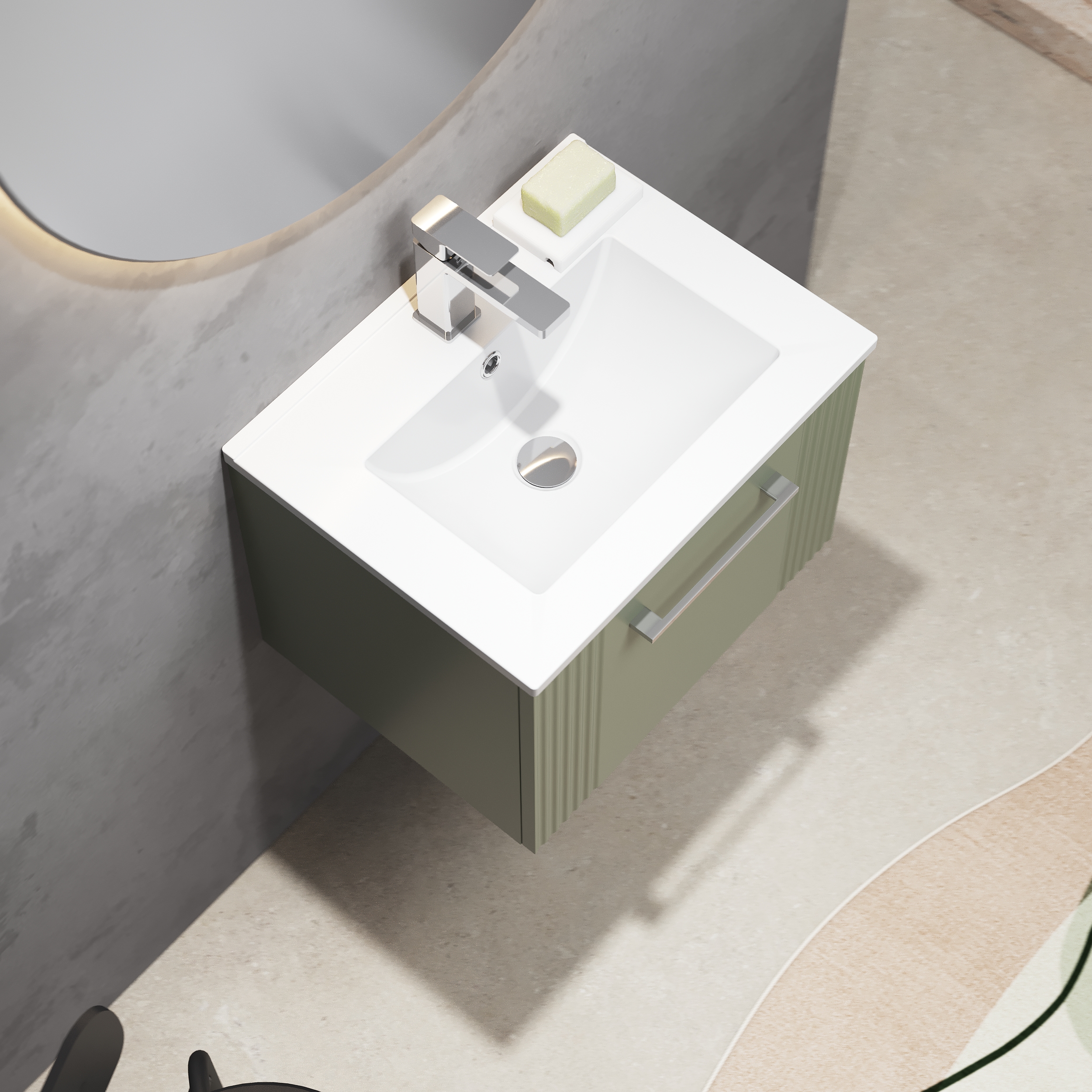 1 Drawer Wall Hung Bathroom Vanity Basin Unit Colour Match Worktop, 800mm