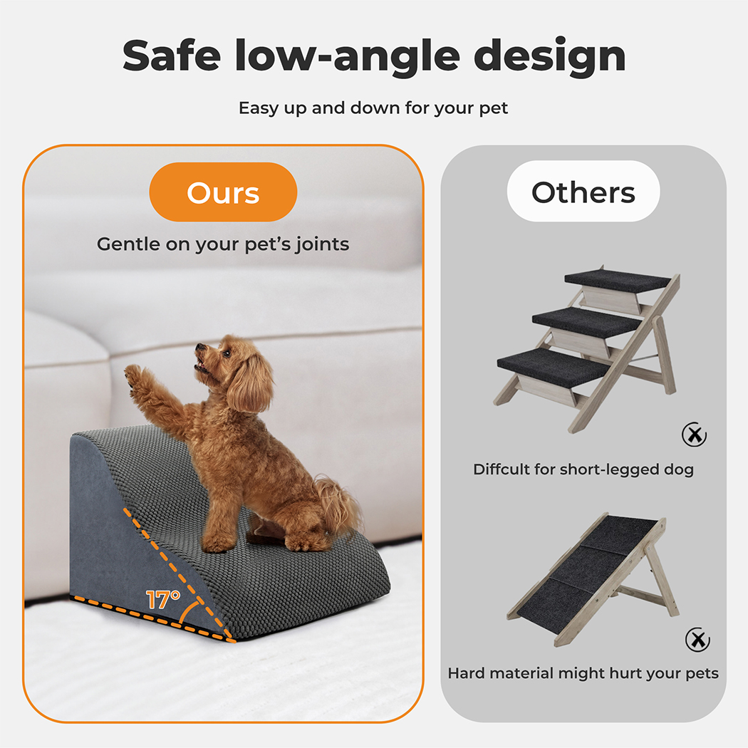 Skylos 3-Step Pet Stairs for Bed Sofa Dog Ramp High Density Foam Non-Slip Ladder