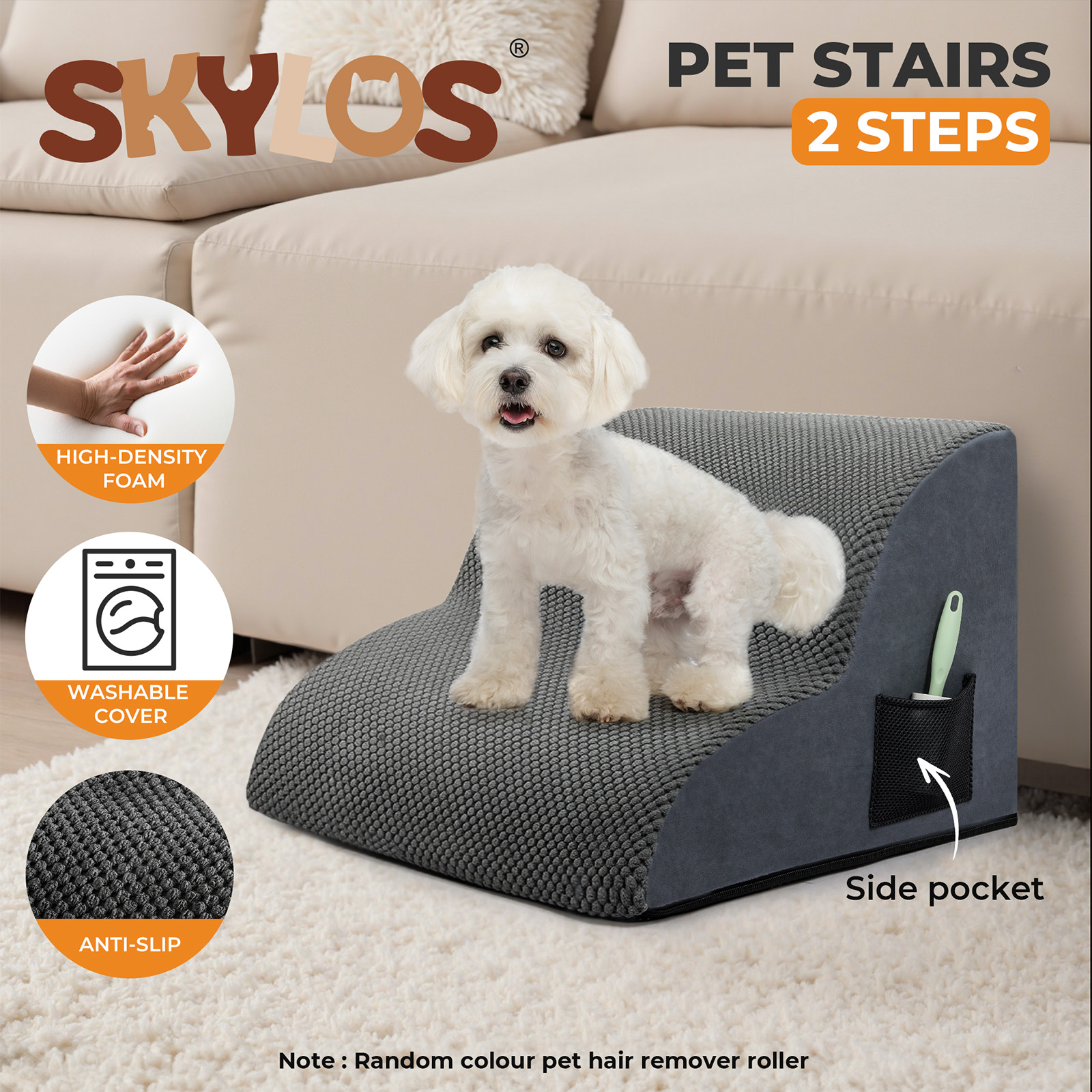 Skylos 2 Step Dog Ramp Pet Stairs for Small Dogs Bed Sofa Foam Non-Slip Washable