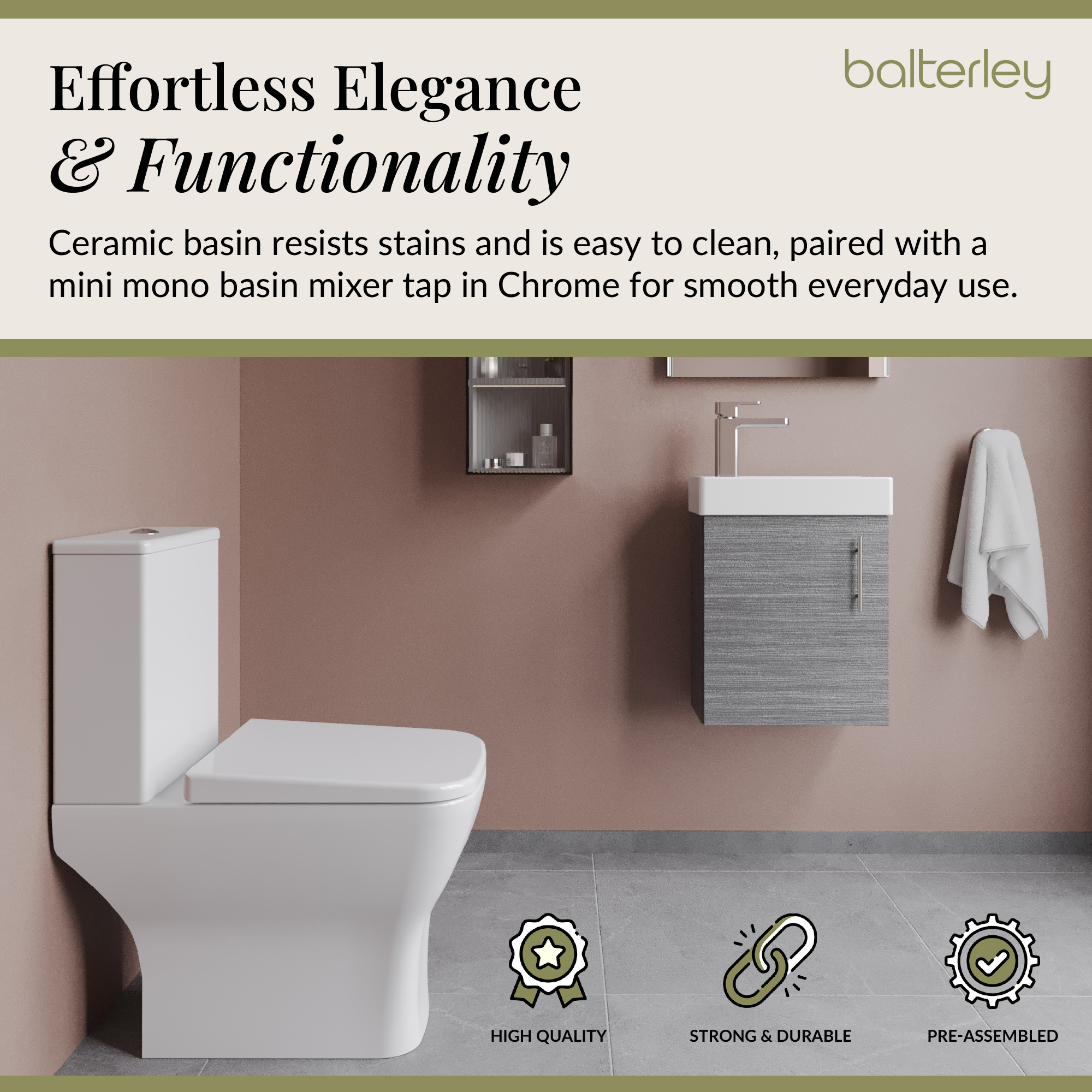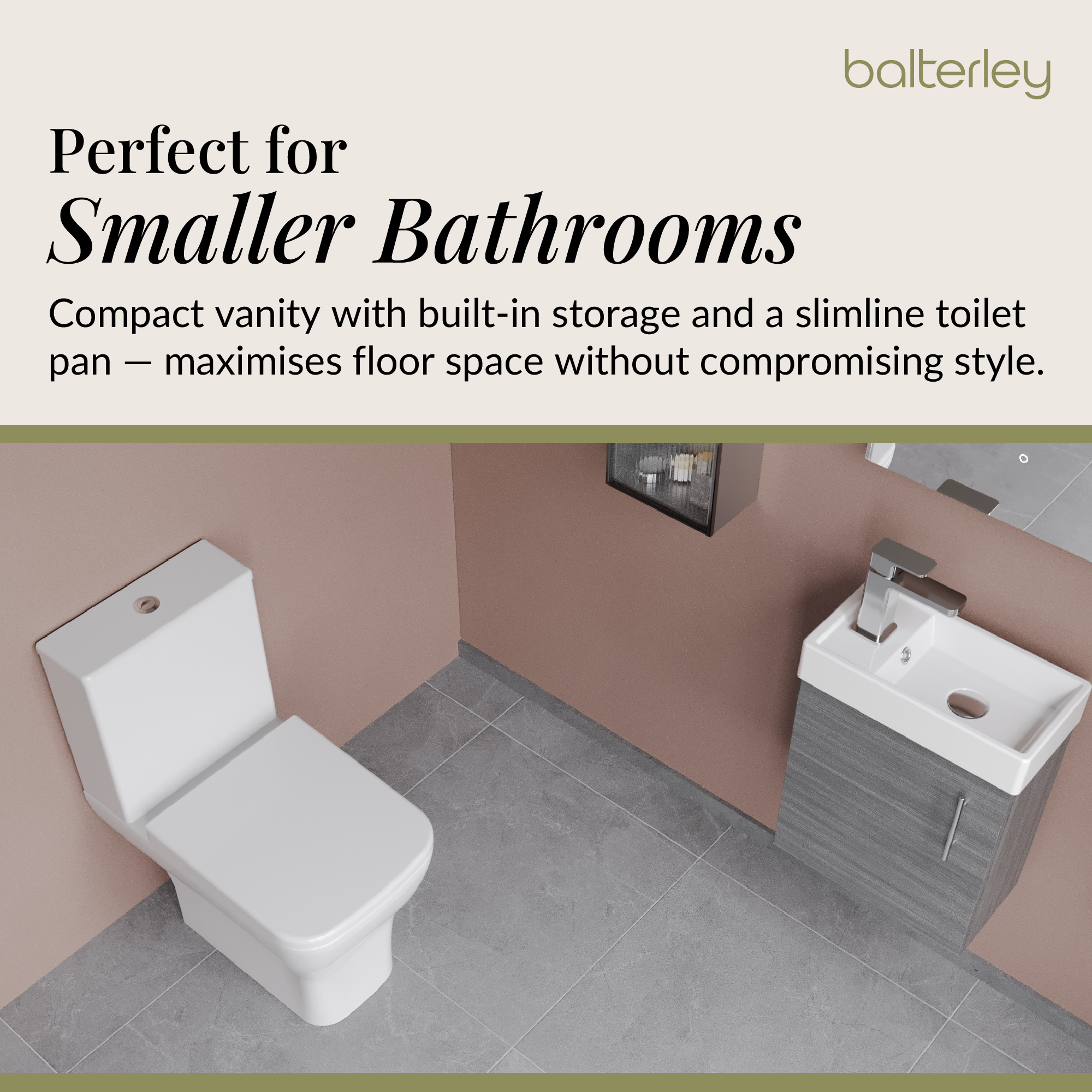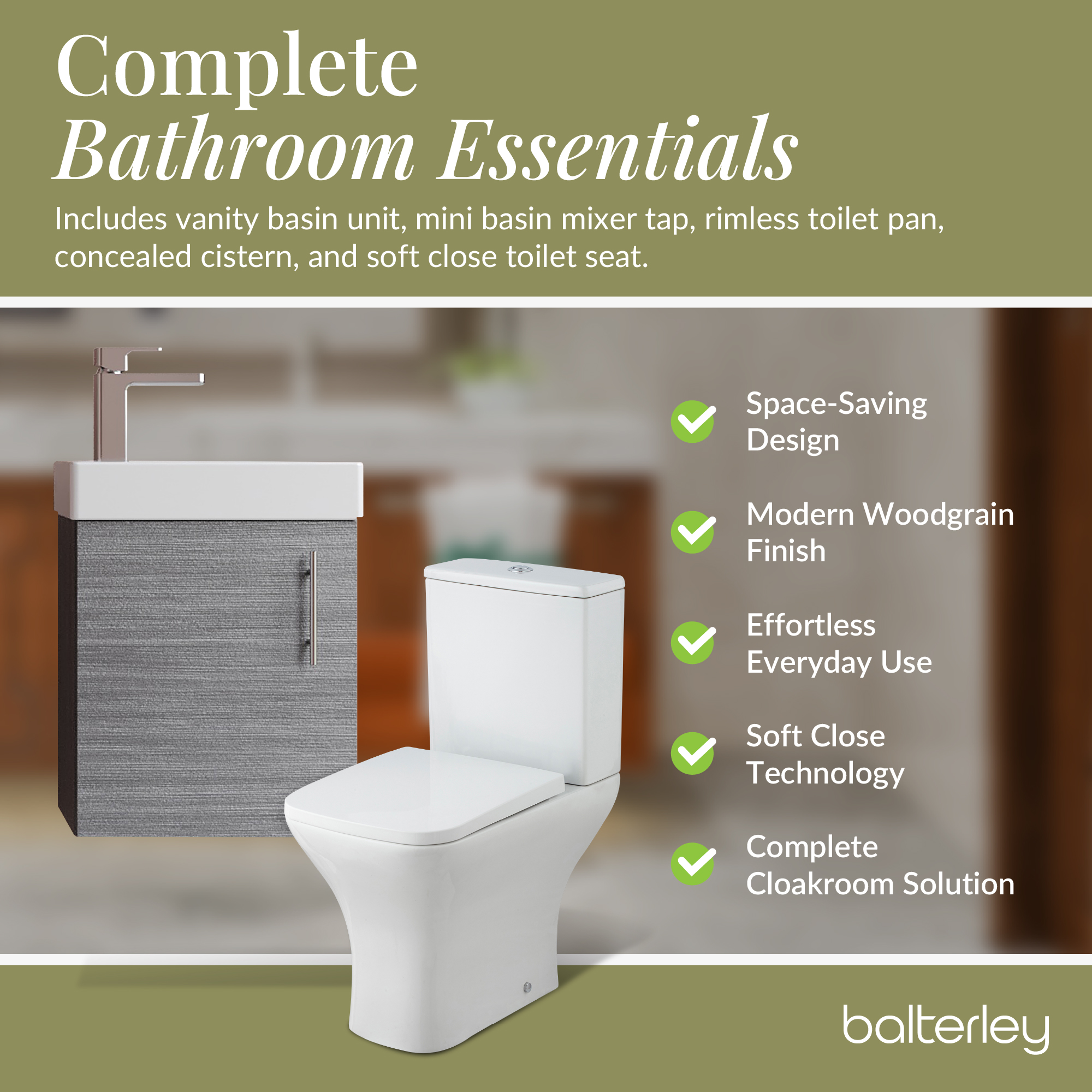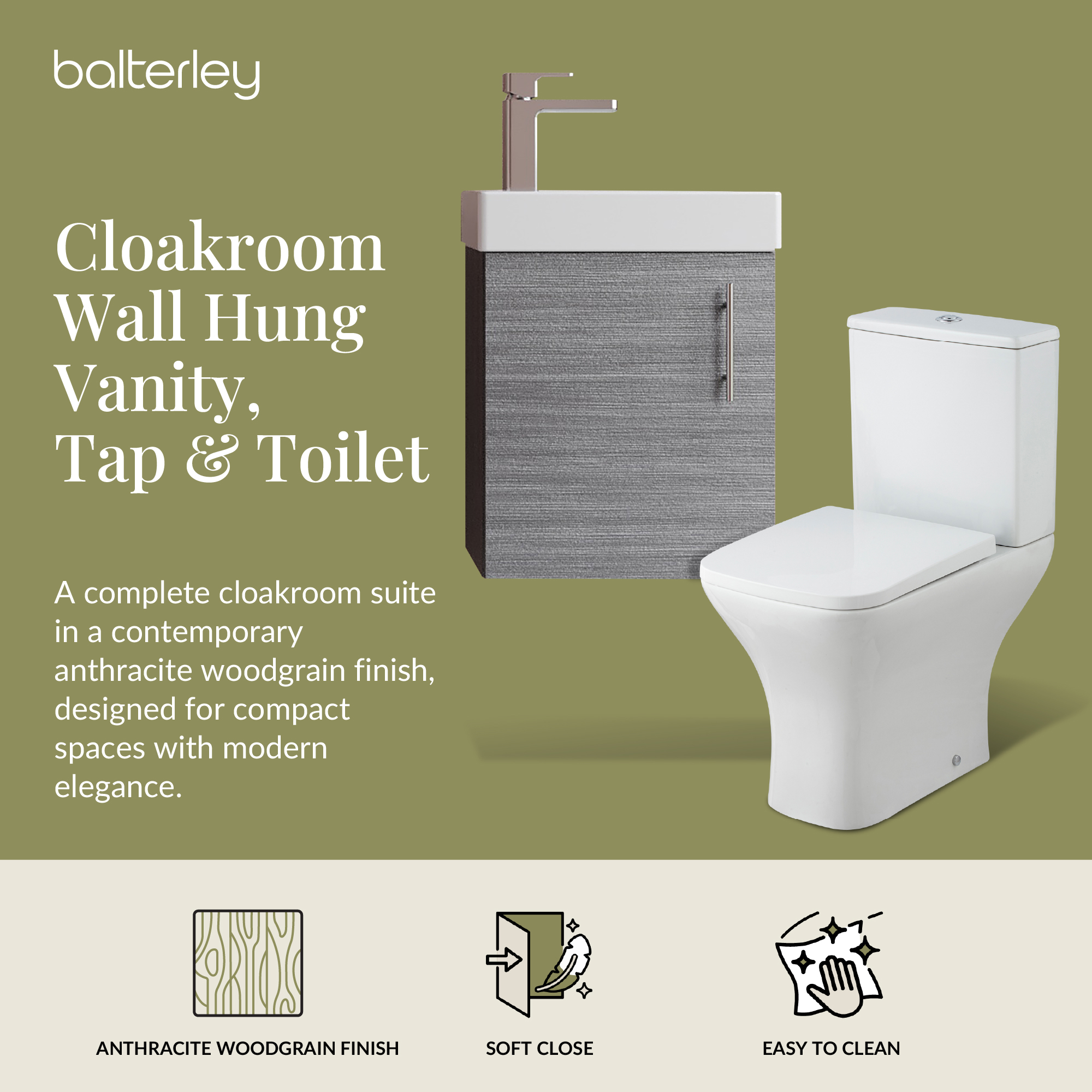 Saint Cloakroom Set - Wall Hung Vanity Basin Unit, Toilet Pan, Cistern, Seat & Mini Basin Tap - Charcoal Black/Chrome - Balterley
