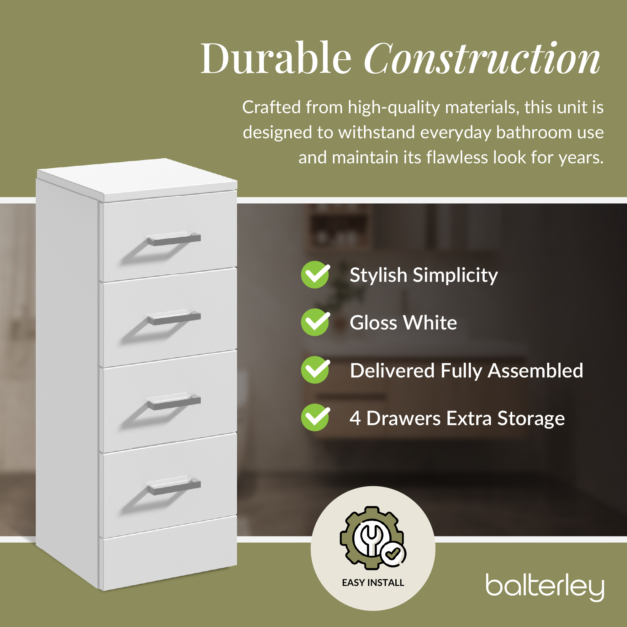 4 Drawer Freestanding Storage Unit Bathroom Furniture Gloss White 250x300mm