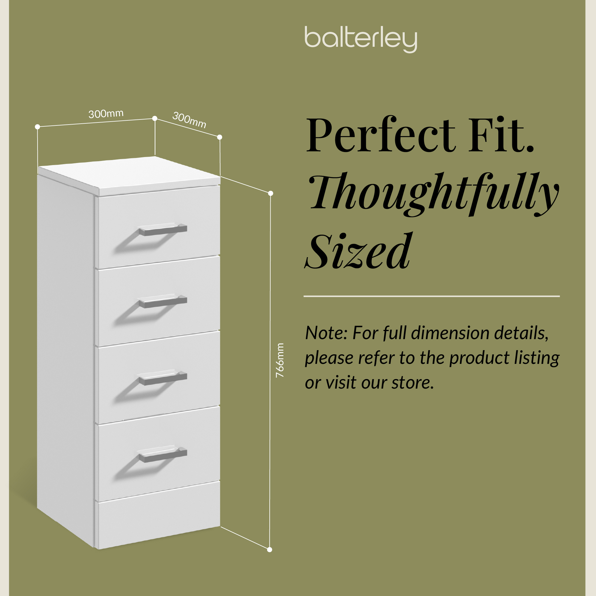 4-Drawer Bathroom Storage Unit Modern Furniture Gloss White 300x300mm Cabinet