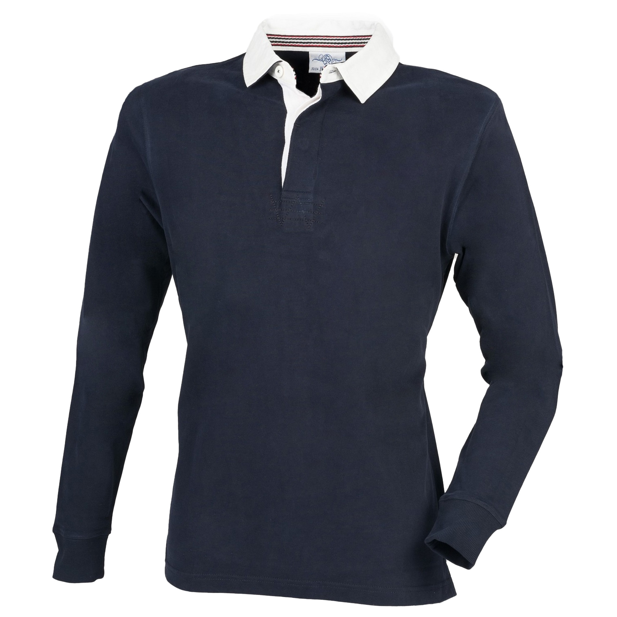 Front Row Men's Premium Long Sleeve Rugby Shirt Top in Navy Size: Small Navy S